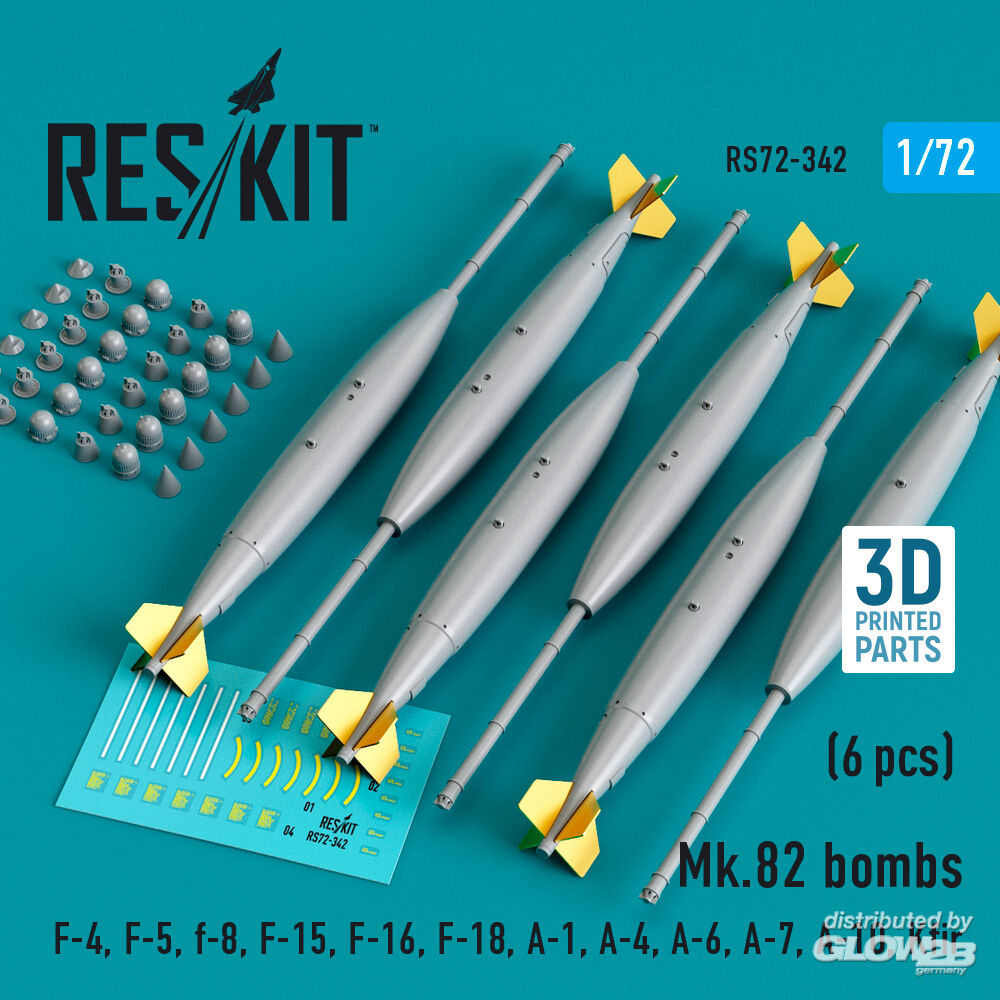 ResKit Models: Mk.82 bombs (6 pcs) (F-4, F-5, F-8, F-15, F-16, F-18, A-1, A-4, A-6, A-7, A-10, Kfir) (3D Printed) in 1:72 [4595103429]