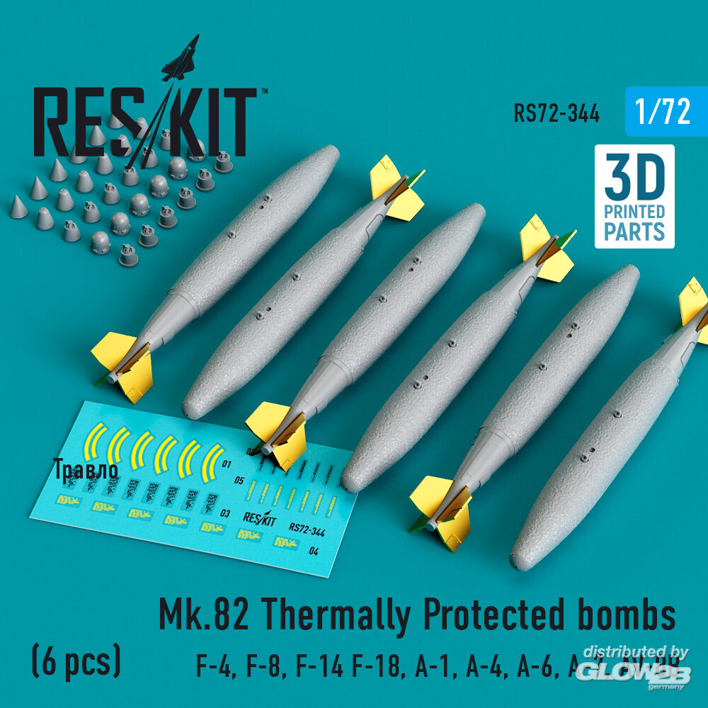 ResKit Models: Mk.82 thermally protected bombs (6 pcs) (F-4, F-8, F-14 F-18, A-1, A-4, A-6, A-7, AV-8B) (3D Printed) in 1:72 [4595103443]