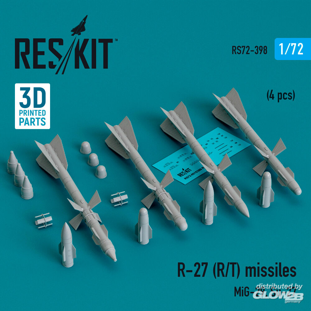 ResKit Models: R-27 (R/T) missiles (4 pcs) (MiG-29, Su-27) (3D Printed) in 1:72 [4595103986]