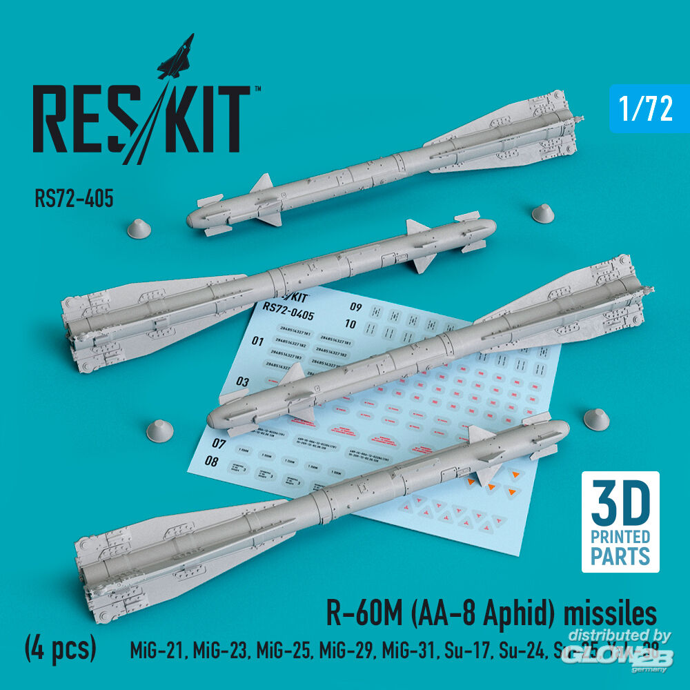 ResKit Models: R-60? (AA-8 Aphid) missiles (4 pcs) (MiG-21,MiG-23,MiG-25, MiG-29,MiG-31,Su-17,Su-24,Su-25,Yak-38) (3D Printed) in 1:72 [4595104051]