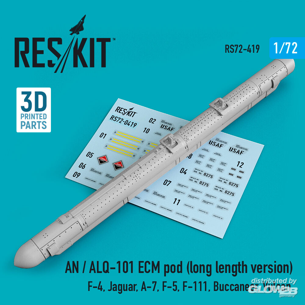 ResKit Models: AN / ALQ-101 ECM pod (long length version) (F-4, Jaguar, A-7, F-5, F-111, Buccaneer, Vulcan) (3D Printed) in 1:72 [4595104198]