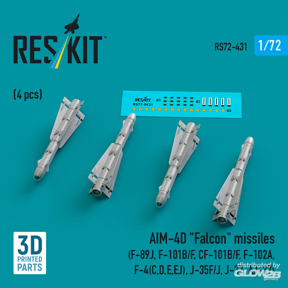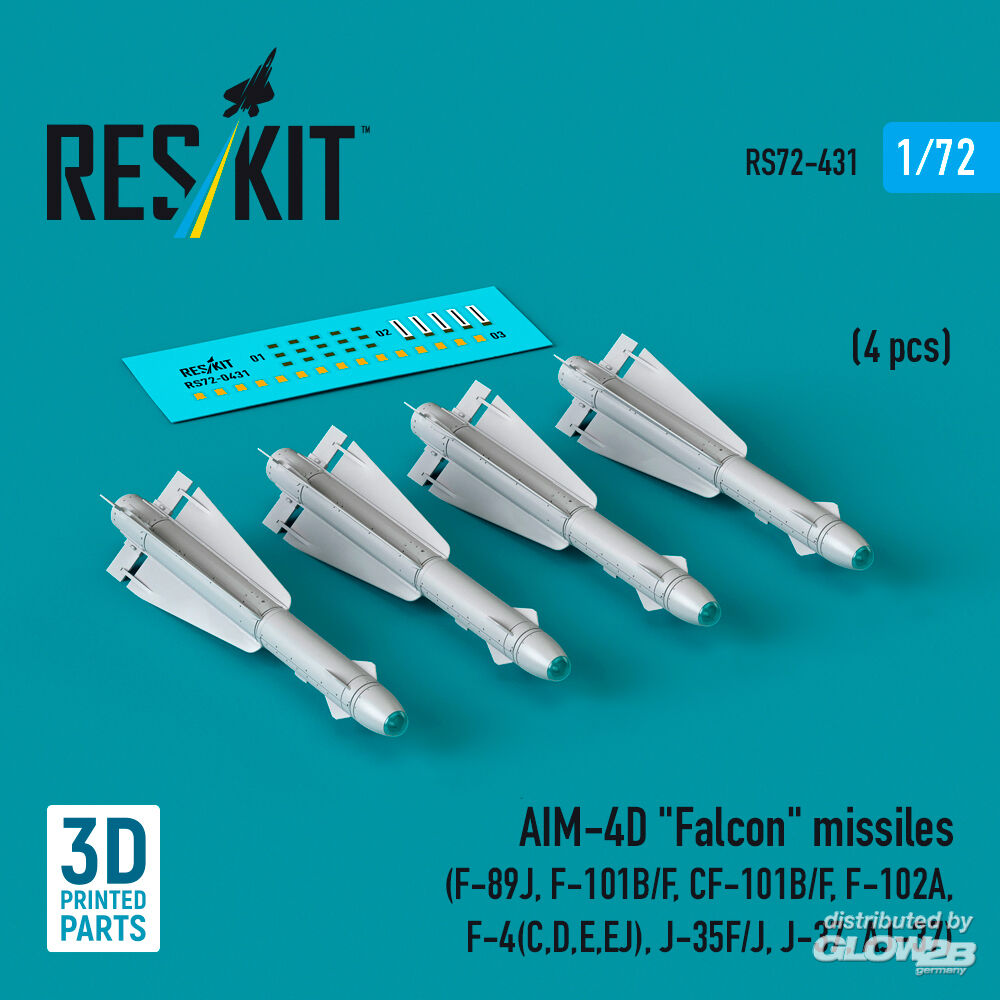 ResKit Models: AIM-4D Falcon missiles (4 pcs) (F-89J, F-101B/F, CF-101B/F, F-102A, F-4(C,D,E,EJ), J-35F/J, J-37, AJ-37) (3D Printed) in 1:72 [4595104310]