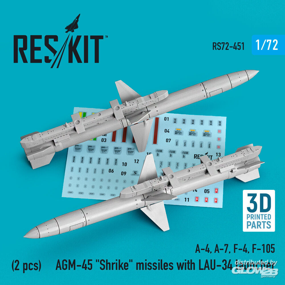 ResKit Models: AGM-45 Shrike missiles with LAU-34 launcher (2 pcs) (A-4, A-7, F-4, F-105) (3D Printed) in 1:72 [4595104518]