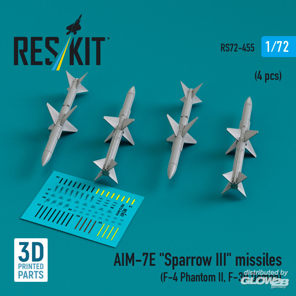 ResKit Models: AIM-7E Sparrow III missiles (4 pcs) (F-4 Phantom II, F-3H Demon) (3D Printed) in 1:72 [4595104556]