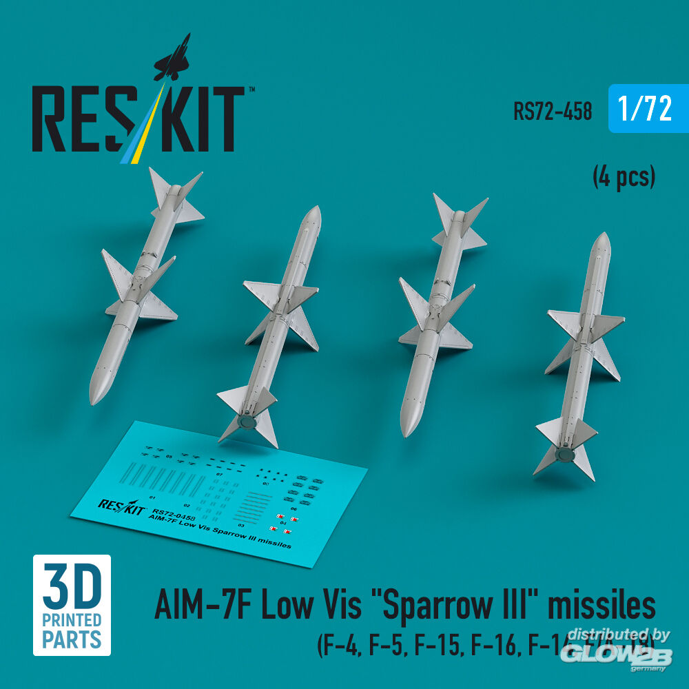 ResKit Models: AIM-7F Low Vis Sparrow III missiles (4 pcs) (F-4, F-5, F-15, F-16, F-14, F/A-18) (3D Printed) in 1:72 [4595104587]