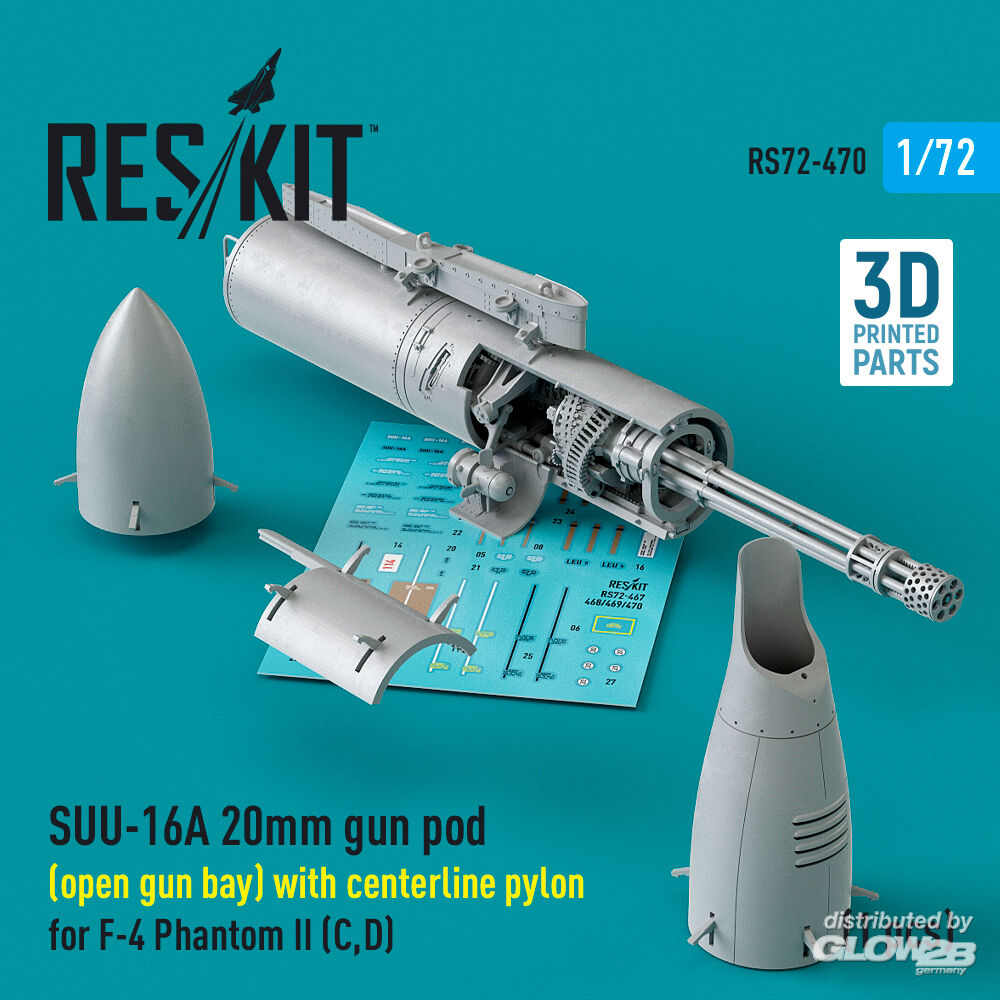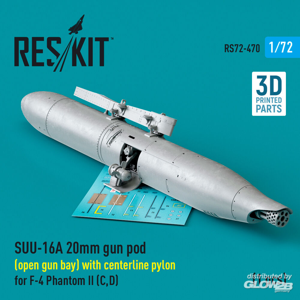 ResKit Models: SUU-16A 20mm gun pod (open gun bay) with centerline pylon for F-4 Phantom II (C,D) (1 pcs) (3D Printed) in 1:72 [4595104709]