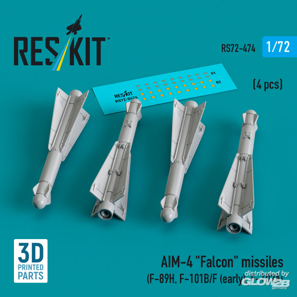 ResKit Models: AIM-4 Falcon missiles (4 pcs) (F-89H, F-101B/F (early), F-102A) (3D Printed) in 1:72 [4595104747]