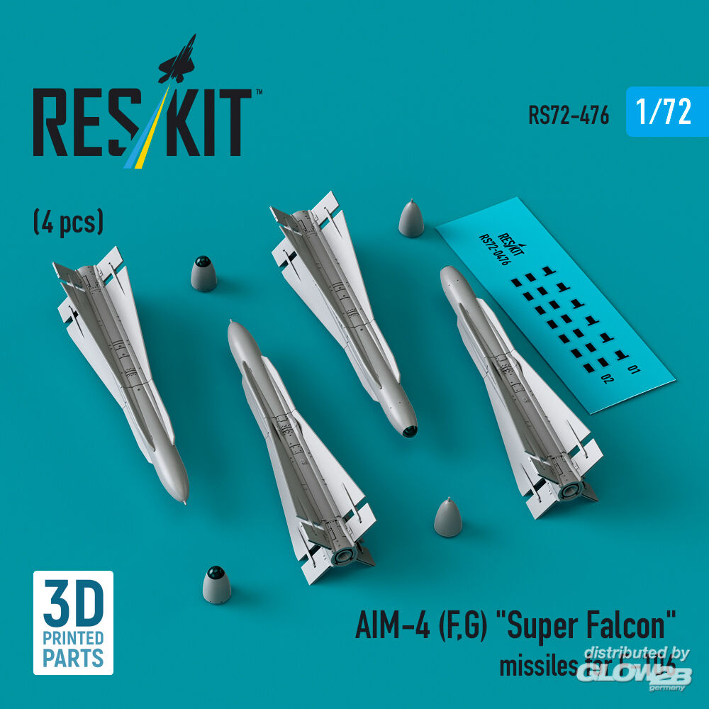 ResKit Models: AIM-4 (F, G) Super Falcon missiles for F-106 (4 pcs) (3D Printed) in 1:72 [4595104761]