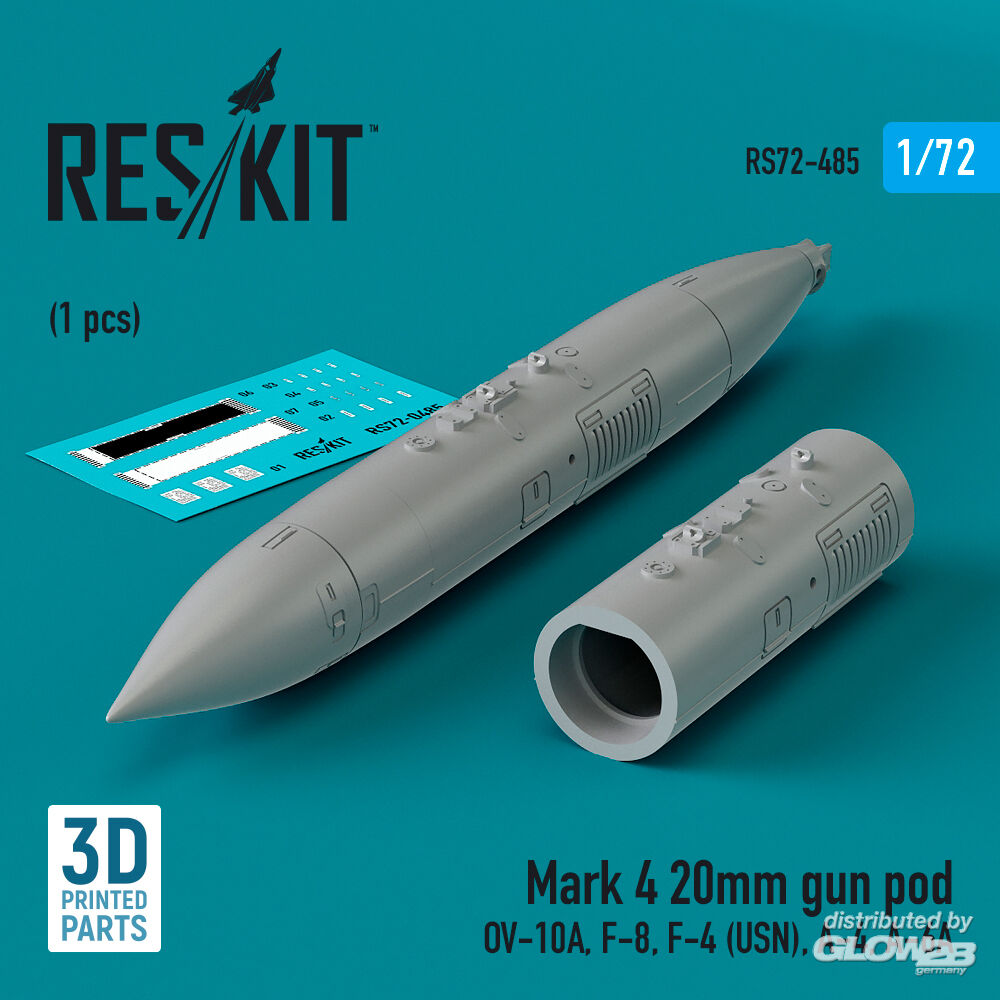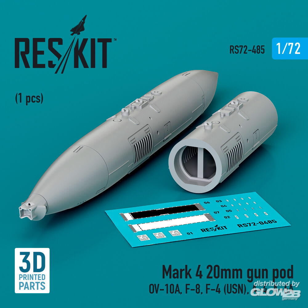 ResKit Models: Mark 4 20mm gun pod (1 pcs) (OV-10A, F-8, F-4 (USN), A-4, A-6A) (3D Printed) in 1:72 [4595104853]