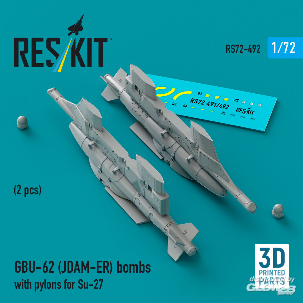 ResKit Models: GBU-62 (JDAM-ER) bombs with pylons for Su-27 Flanker (2 pcs) (3D Printed) in 1:72 [4595104921]