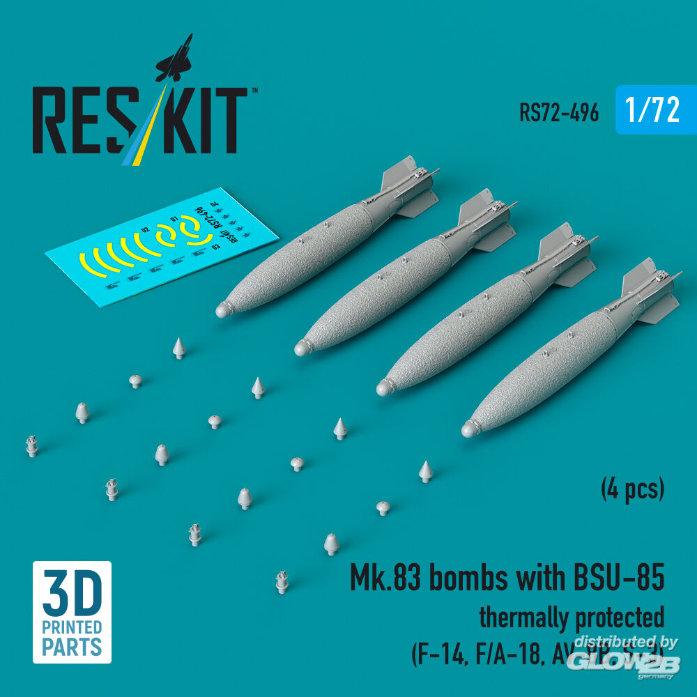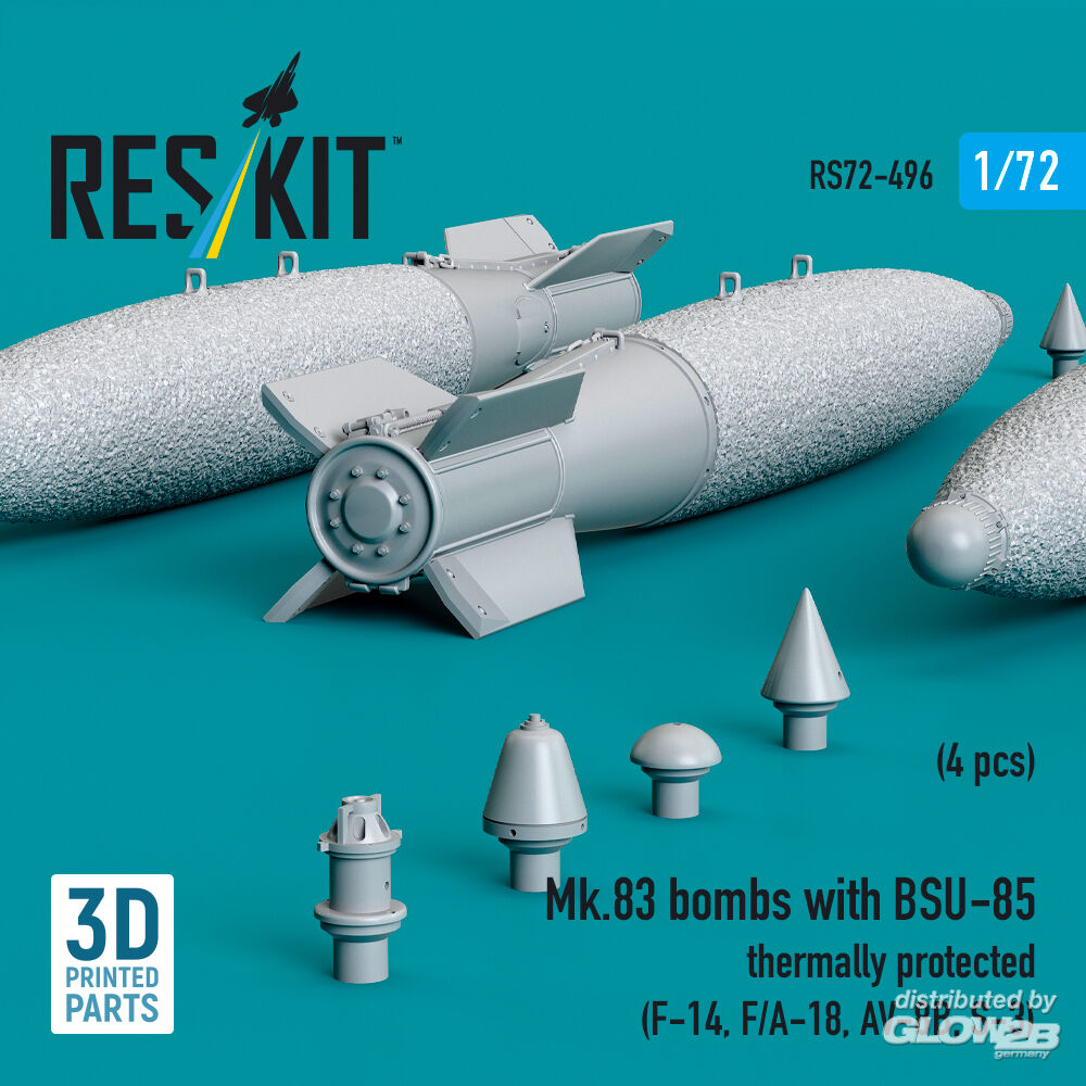 ResKit Models: Mk.83 bombs with BSU-85 thermally protected (4 pcs) (F-14, F/A-18, AV-8B, S-3) (3D printed) in 1:72 [4595104969]