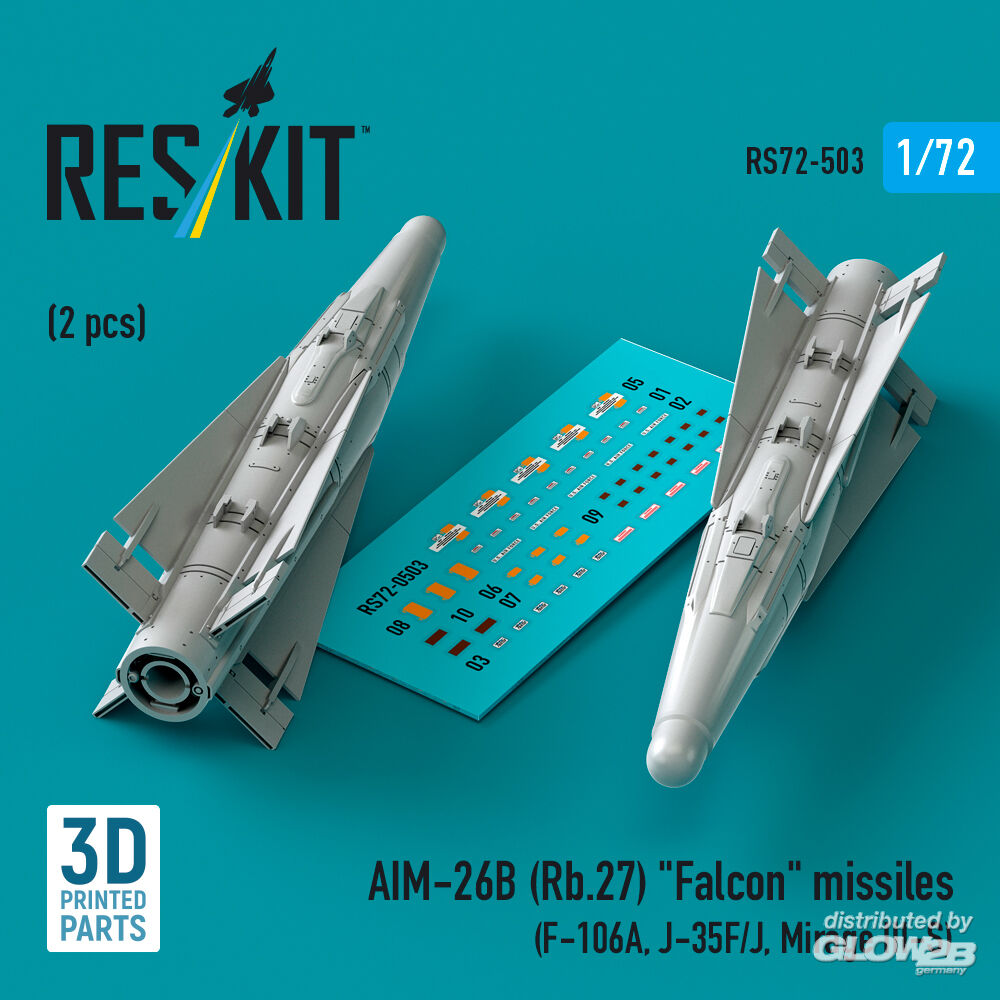 ResKit Models: AIM-26B (Rb.27) Falcon missiles (2 pcs) (F-106A, J-35F/J, Mirage III-S) (3D Printed) in 1:72 [4595105034]