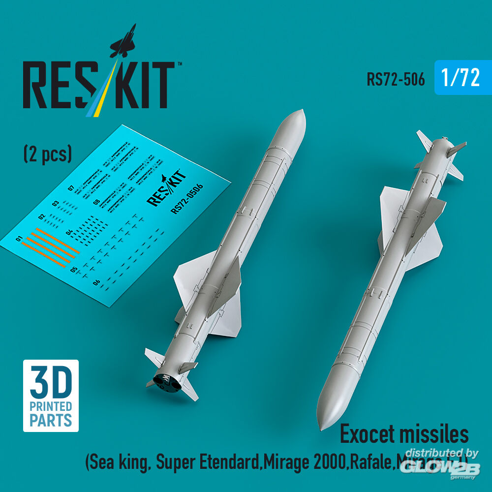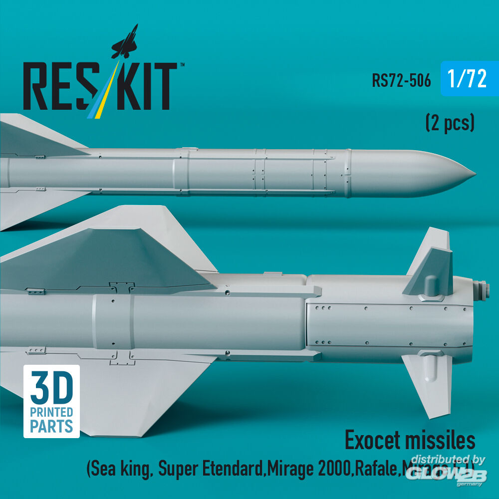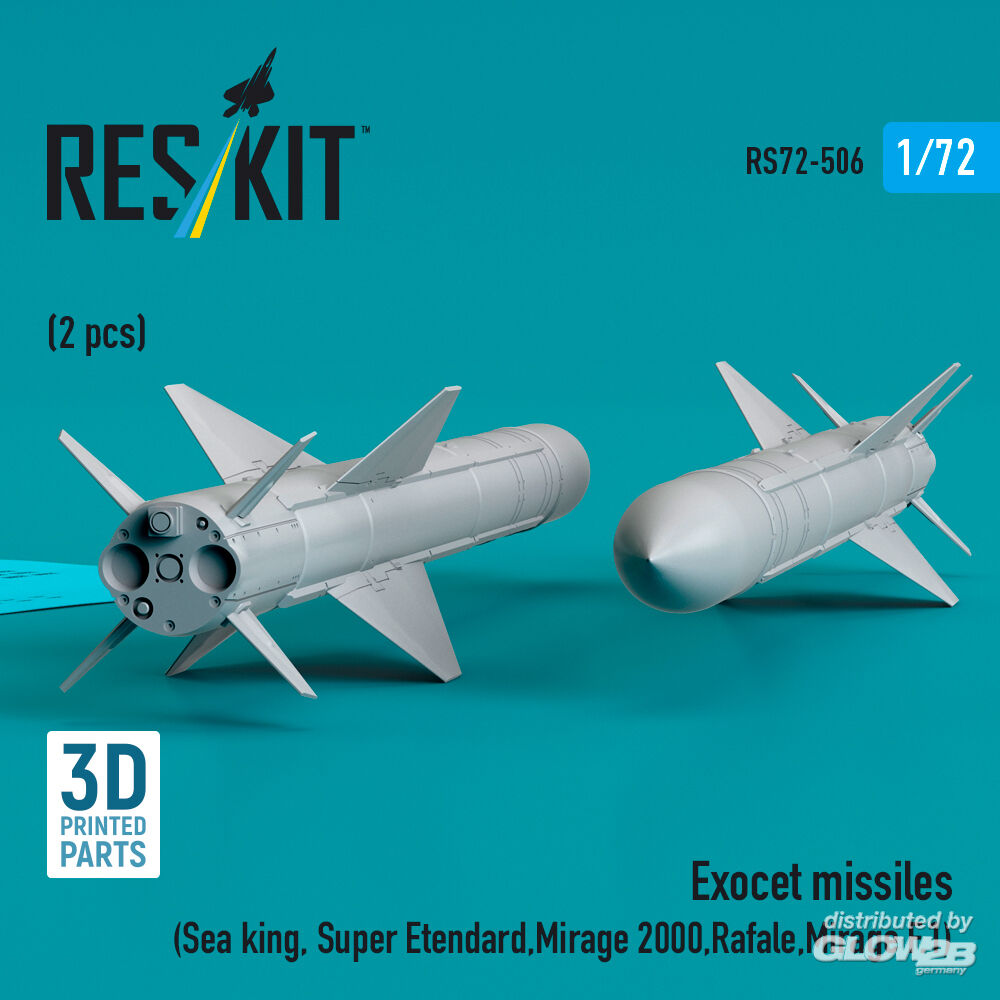 ResKit Models: Exocet missiles (2 pcs) (Sea King, Super Etendard, Mirage 2000, Rafale, Mirage F.1) (3D Printed) in 1:72 [4595105065]