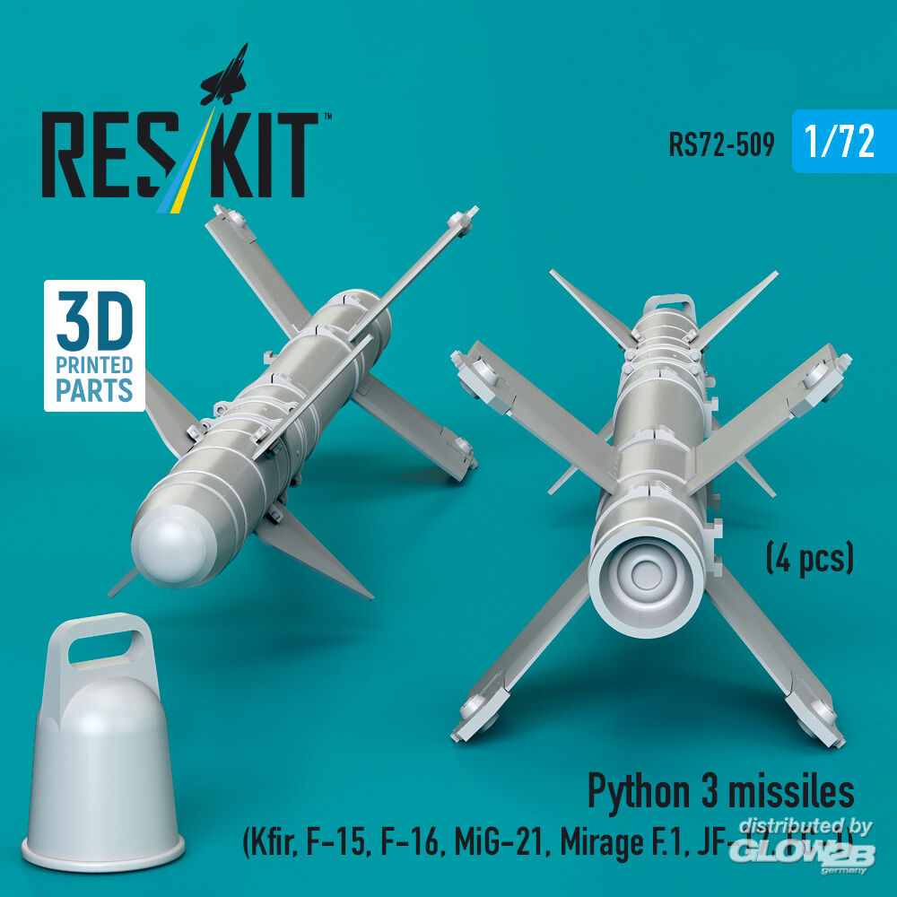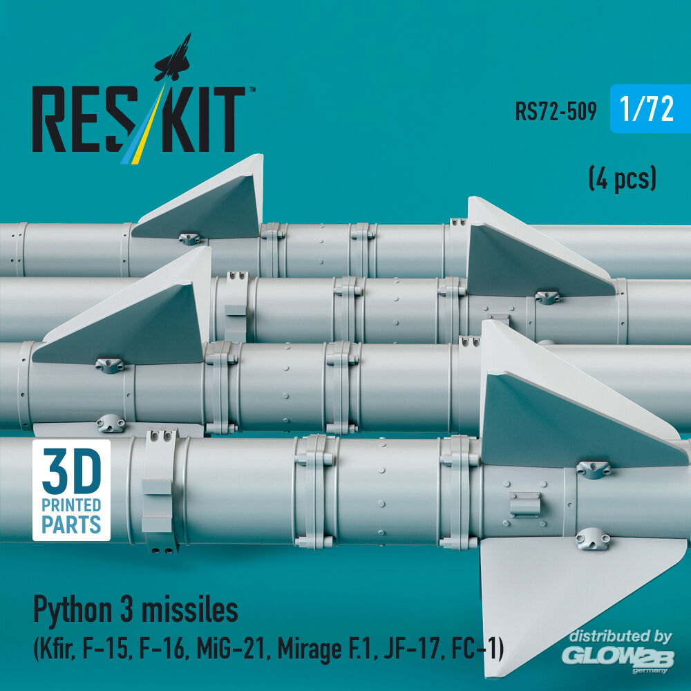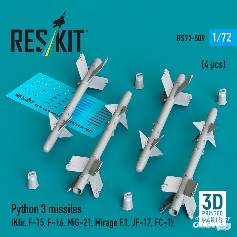 ResKit Models: Python 3 missiles (4 pcs) (Kfir, F-15, F-16, MiG-21, Mirage F.1, JF-17, FC-1) (3D Printed) in 1:72 [4595105096]