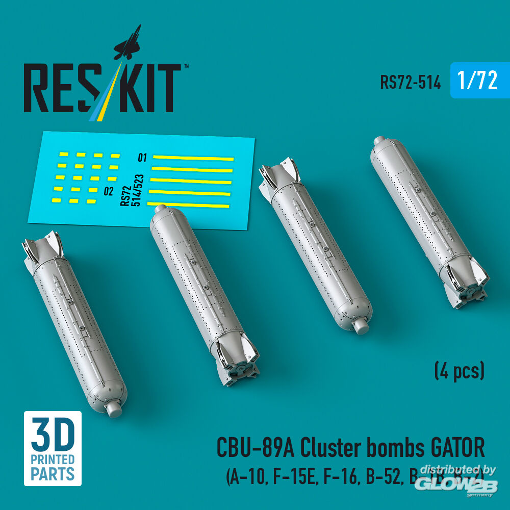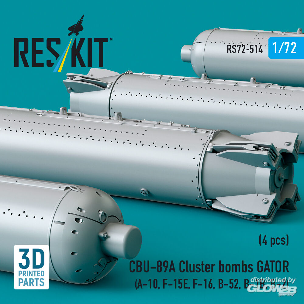 ResKit Models: CBU-89A cluster bombs GATOR (4 pcs) (A-10, F-15E, F-16, B-52, B-1B, B-2) (3D Printed) in 1:72 [4595105140]