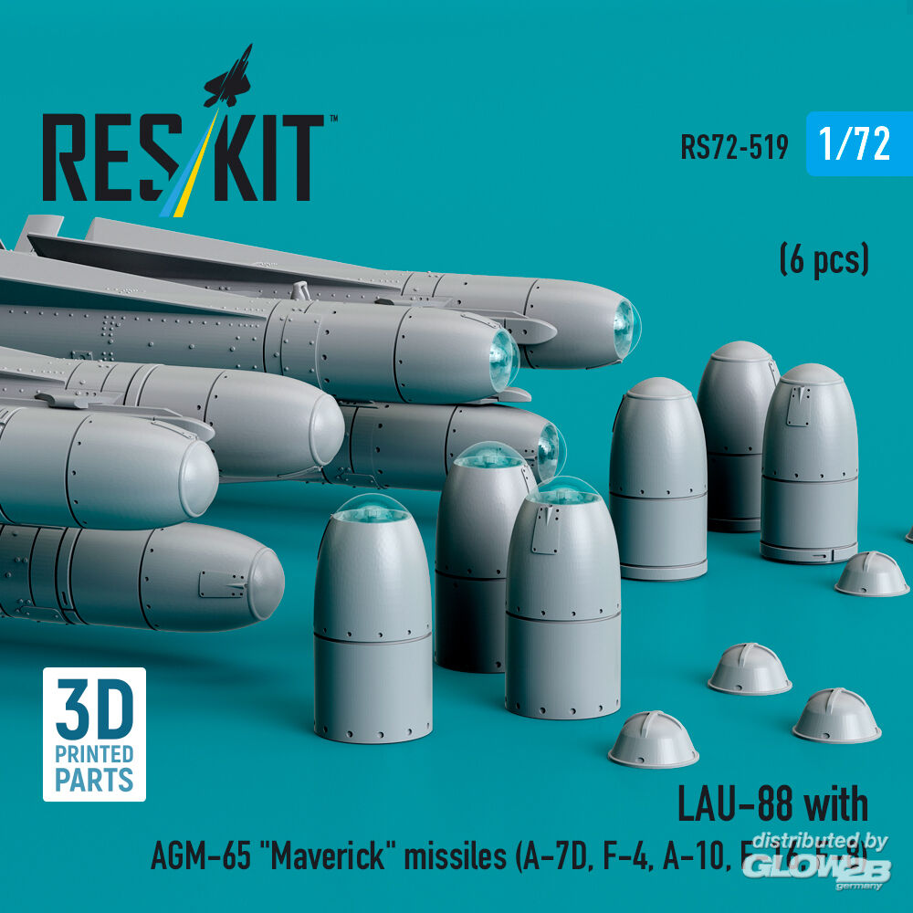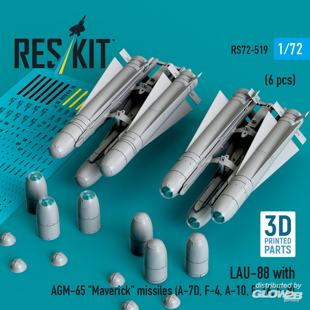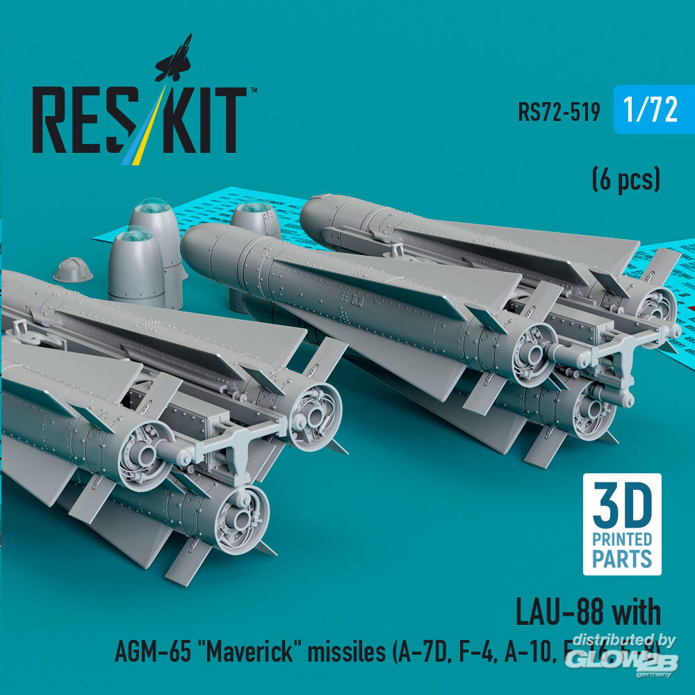 ResKit Models: LAU-88 with (2 pcs) AGM-65 Maverick missiles (6 pcs) (A-7D, F-4, A-10, F-16) (3D Printed) in 1:72 [4595105195]