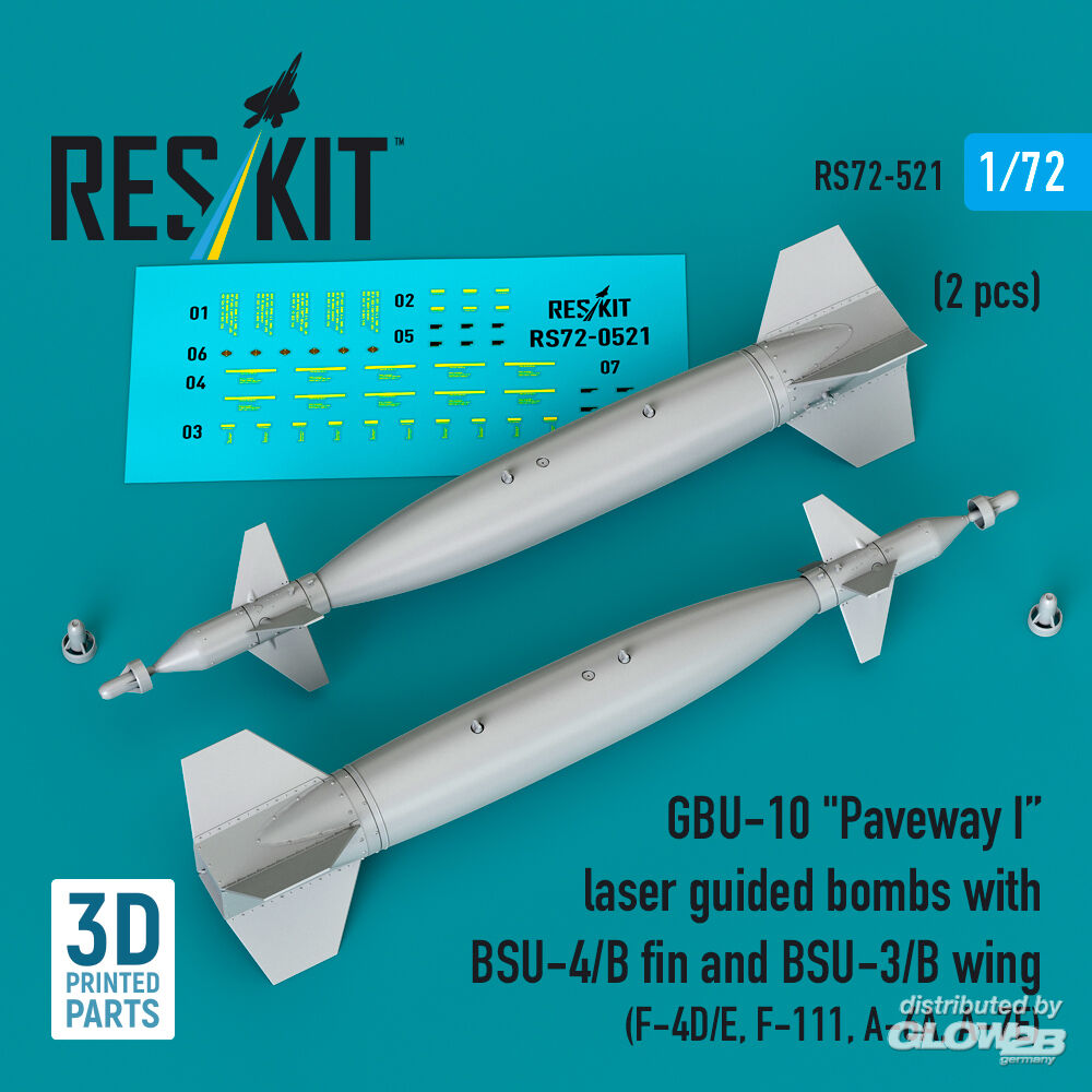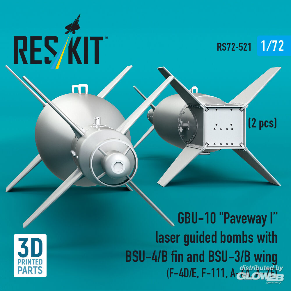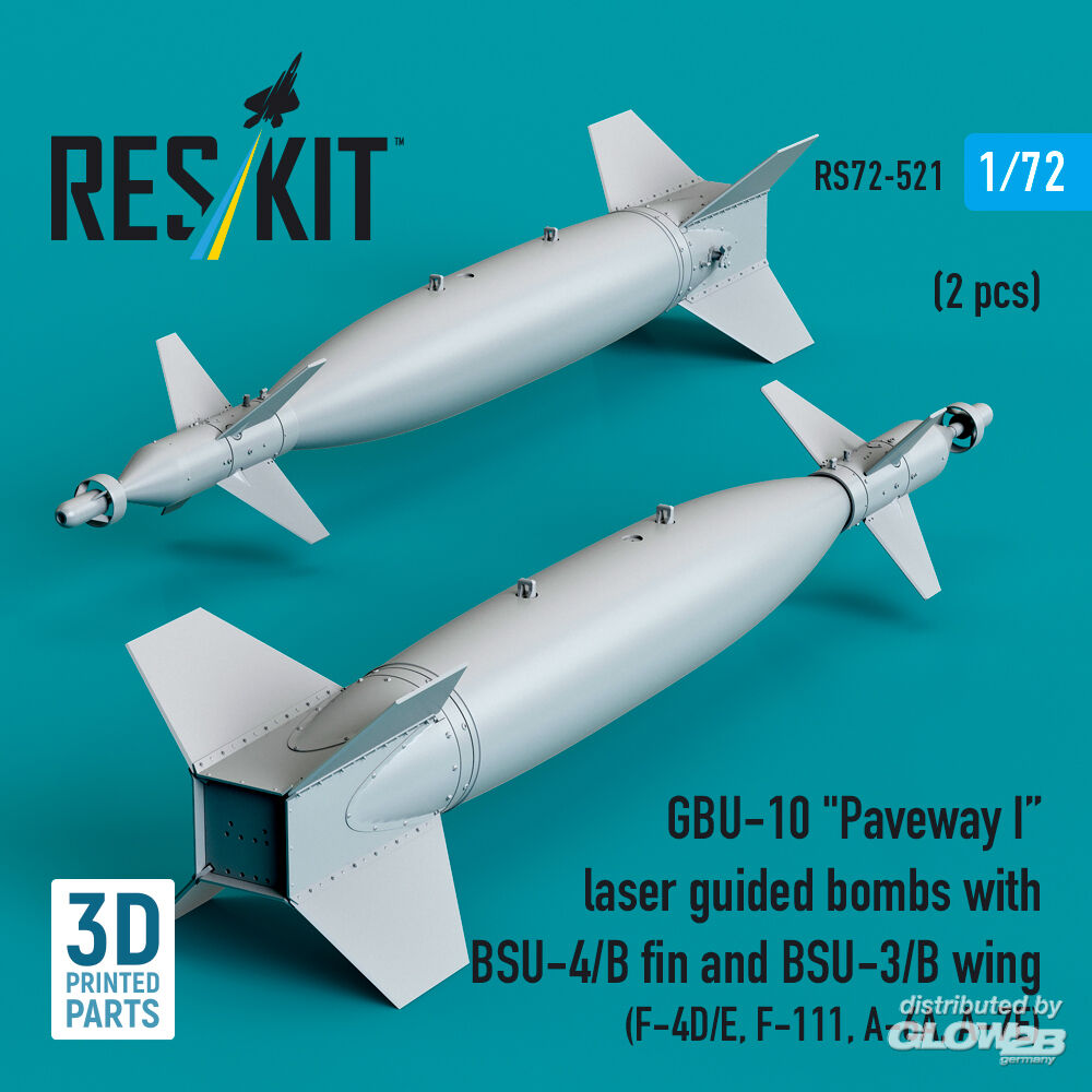 ResKit Models: GBU-10 Paveway I laser guided bombs with BSU-4/B fin and BSU-3/B wing (2 pcs) (F-4D/E, F-111, A-6A, A-7E) (3D Printed) in 1:72 [4595105218]