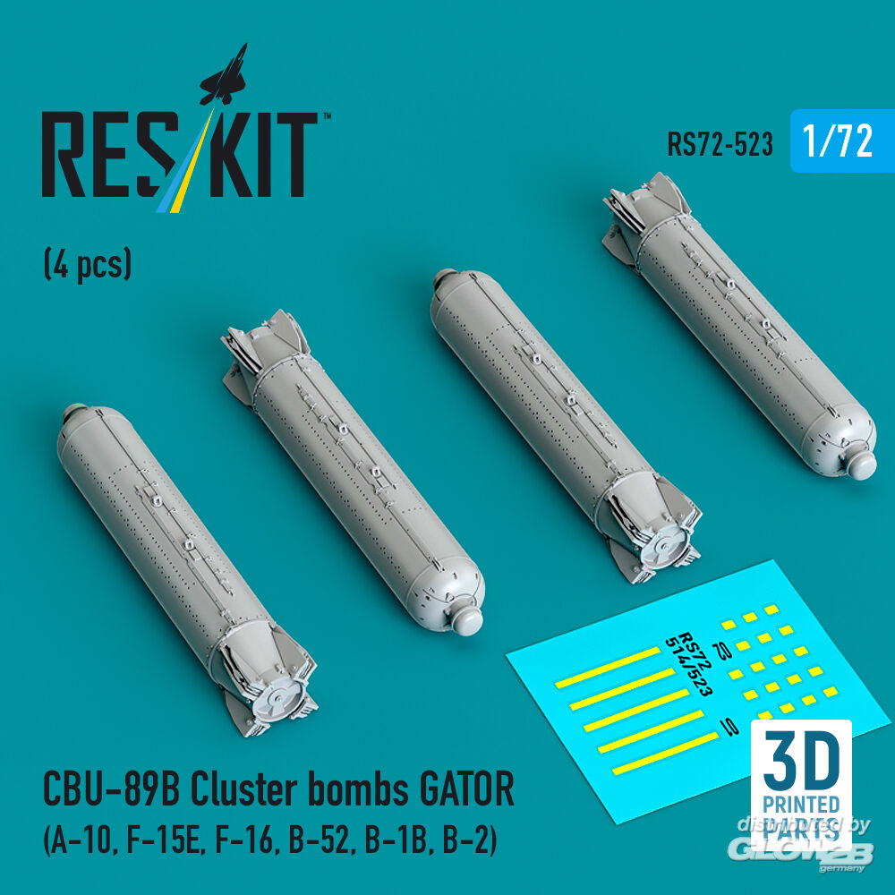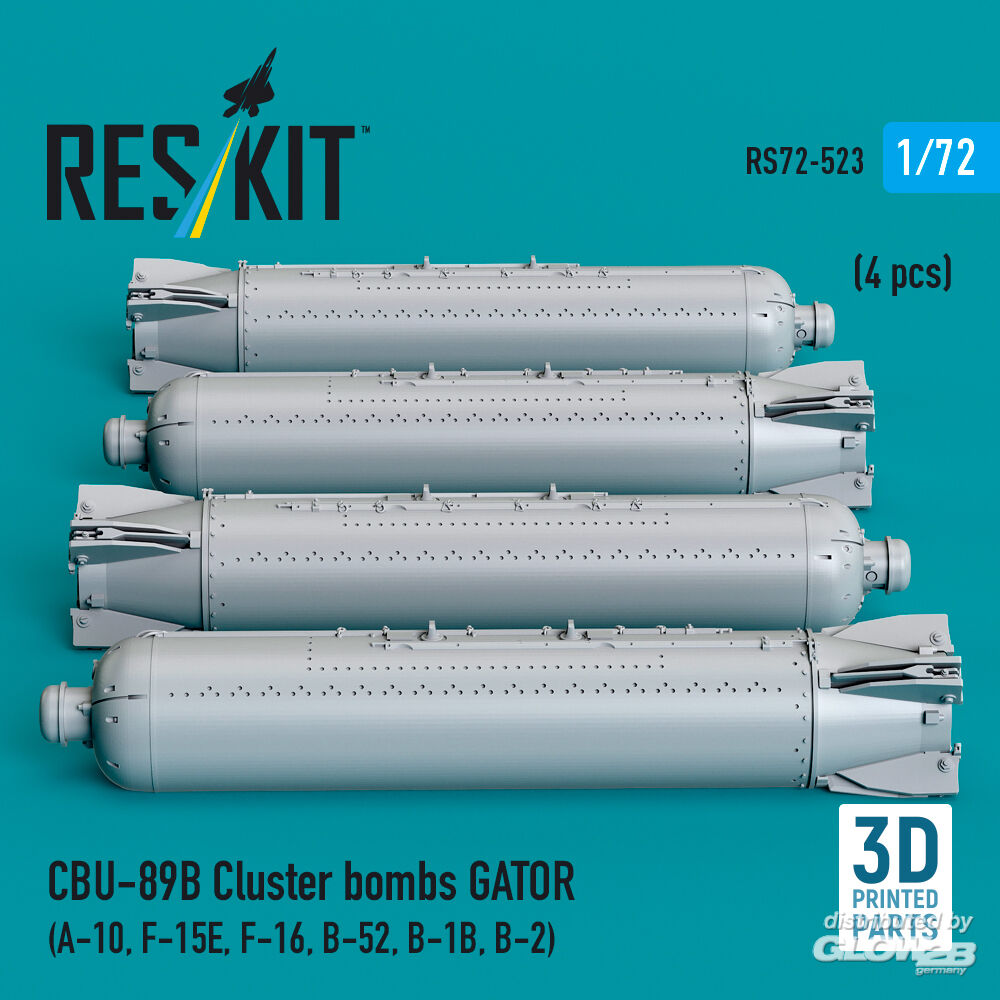 ResKit Models: CBU-89B cluster bombs GATOR (4 pcs) (A-10, F-15E, F-16, B-52, B-1B, B-2) (3D Printed) in 1:72 [4595105232]