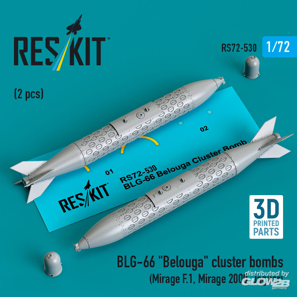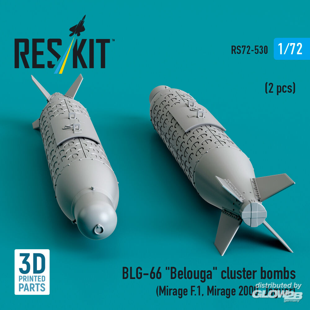 ResKit Models: BLG-66 Belouga cluster bombs (2 pcs) (Mirage F.1, Mirage 2000, Jaguar) (3D Printed) in 1:72 [4595105300]