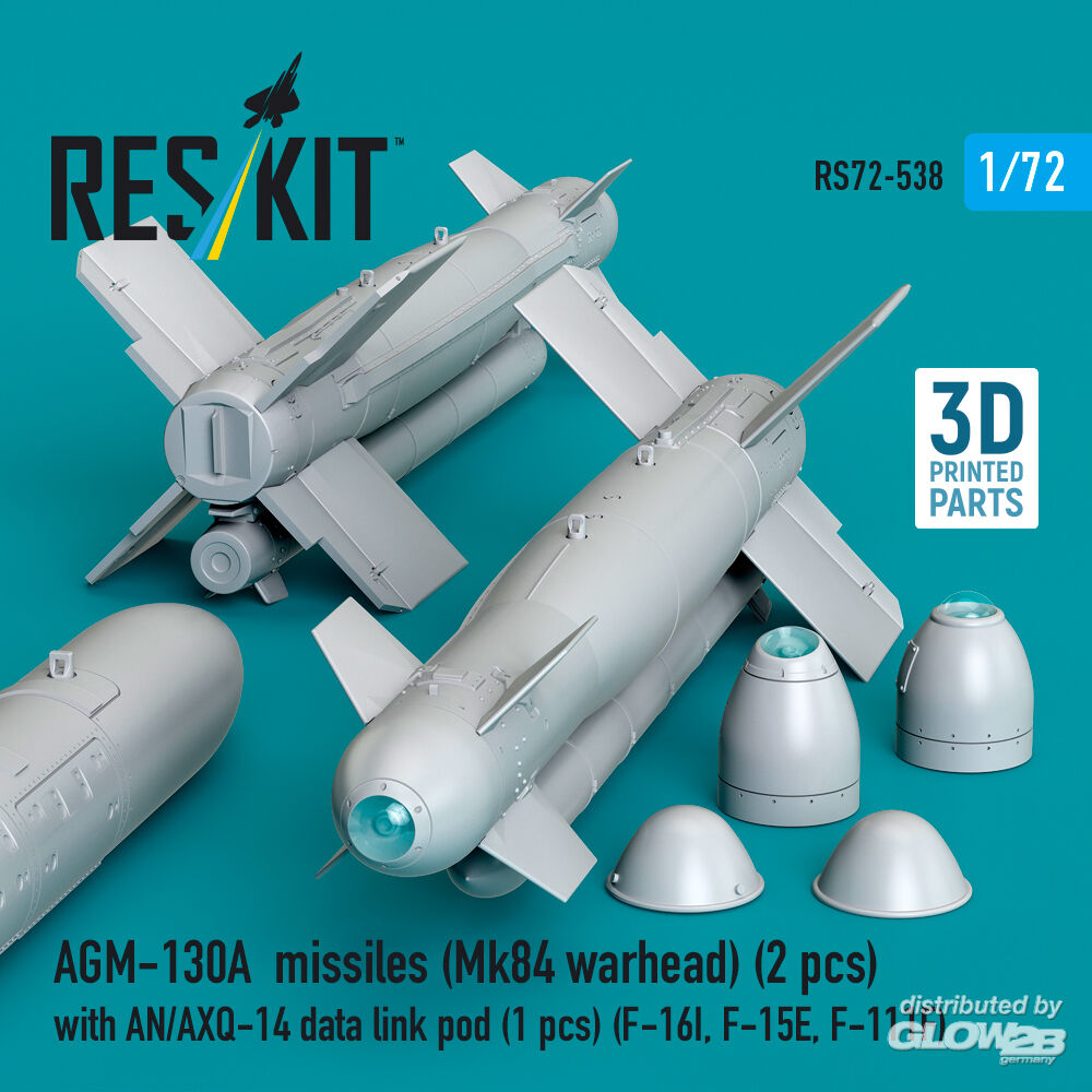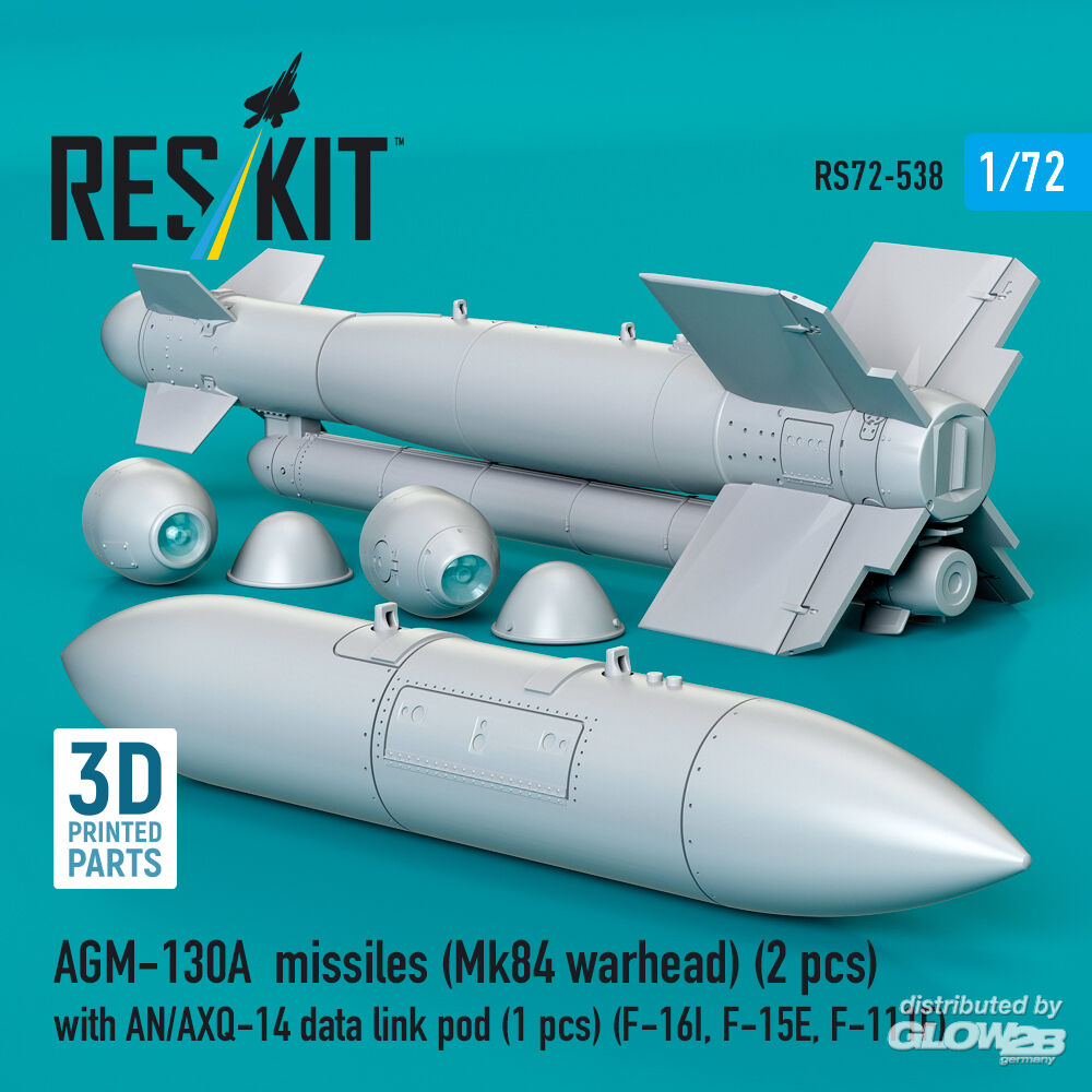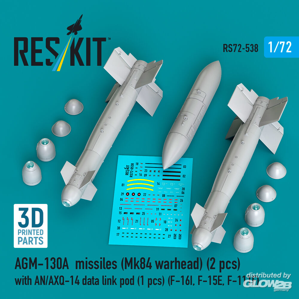 ResKit Models: AGM-130A missiles (Mk84 warhead) (2 pcs) with AN/AXQ-14 data link pod (1 pcs) (F-16I, F-15E, F-111F) (3D Printed) in 1:72 [4595105386]