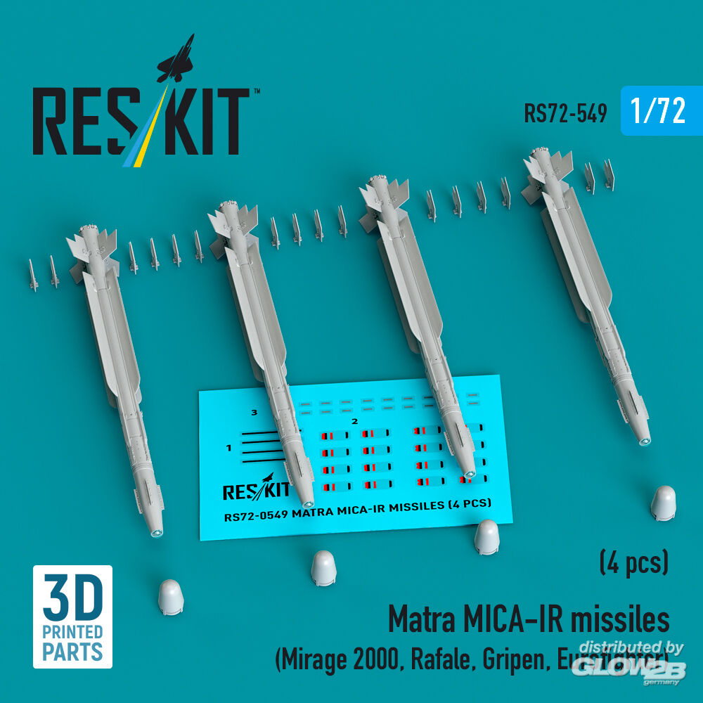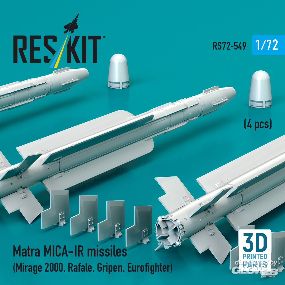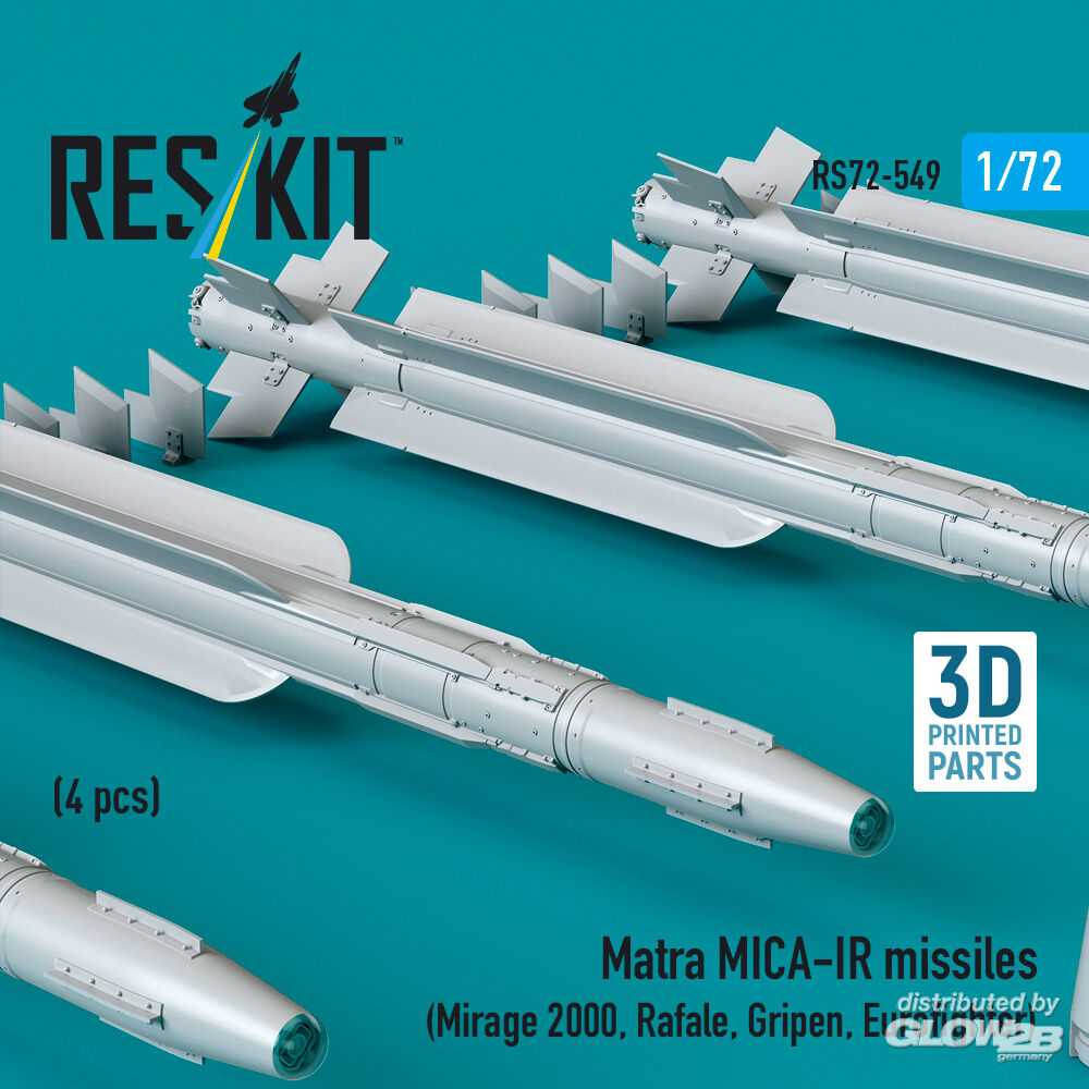 ResKit Models: Matra MICA-IR missiles (4 pcs) (Mirage 2000, Rafale, Gripen, Eurofighter) (3D Printed) in 1:72 [4595105492]