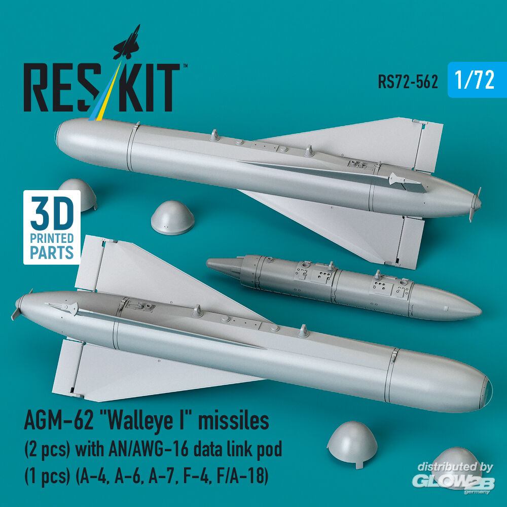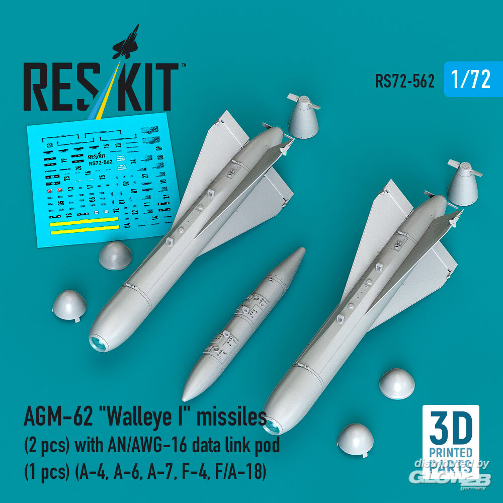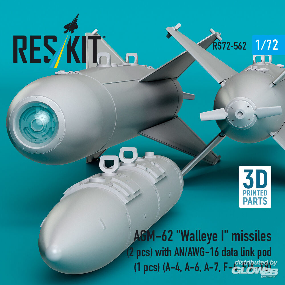 ResKit Models: AGM-62 Walleye I missiles (2 pcs) with AN/AWG-16 data link pod (1 pcs) (A-4, A-6, A-7, F-4, F/A-18) (3D Printed) in 1:72 [4595105621]