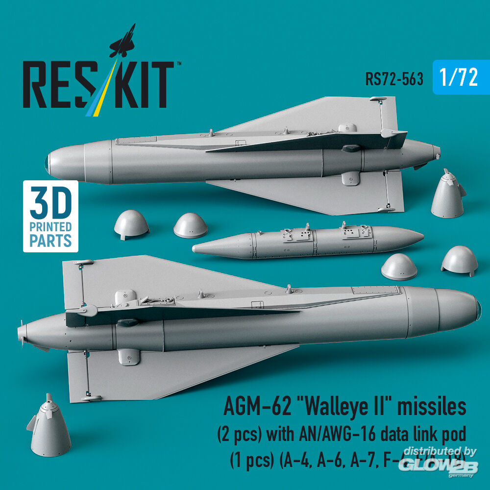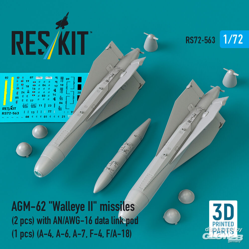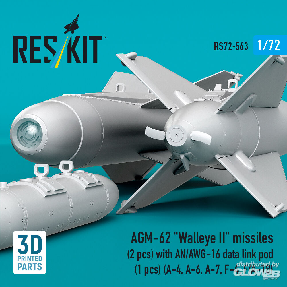 ResKit Models: AGM-62 Walleye II missiles (2 pcs) with AN/AWG-16 data link pod (1 pcs) (A-4, A-6, A-7, F-4, F/A-18) (3D Printed) in 1:72 [4595105638]