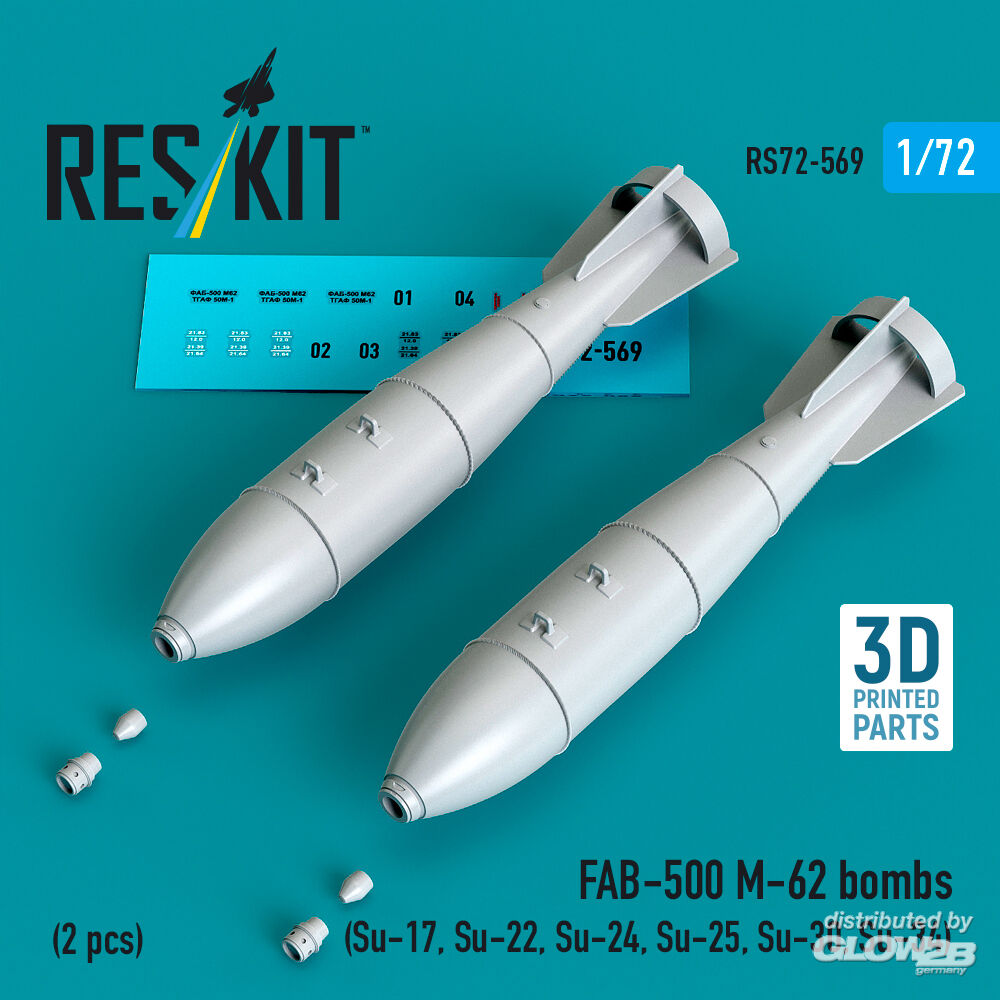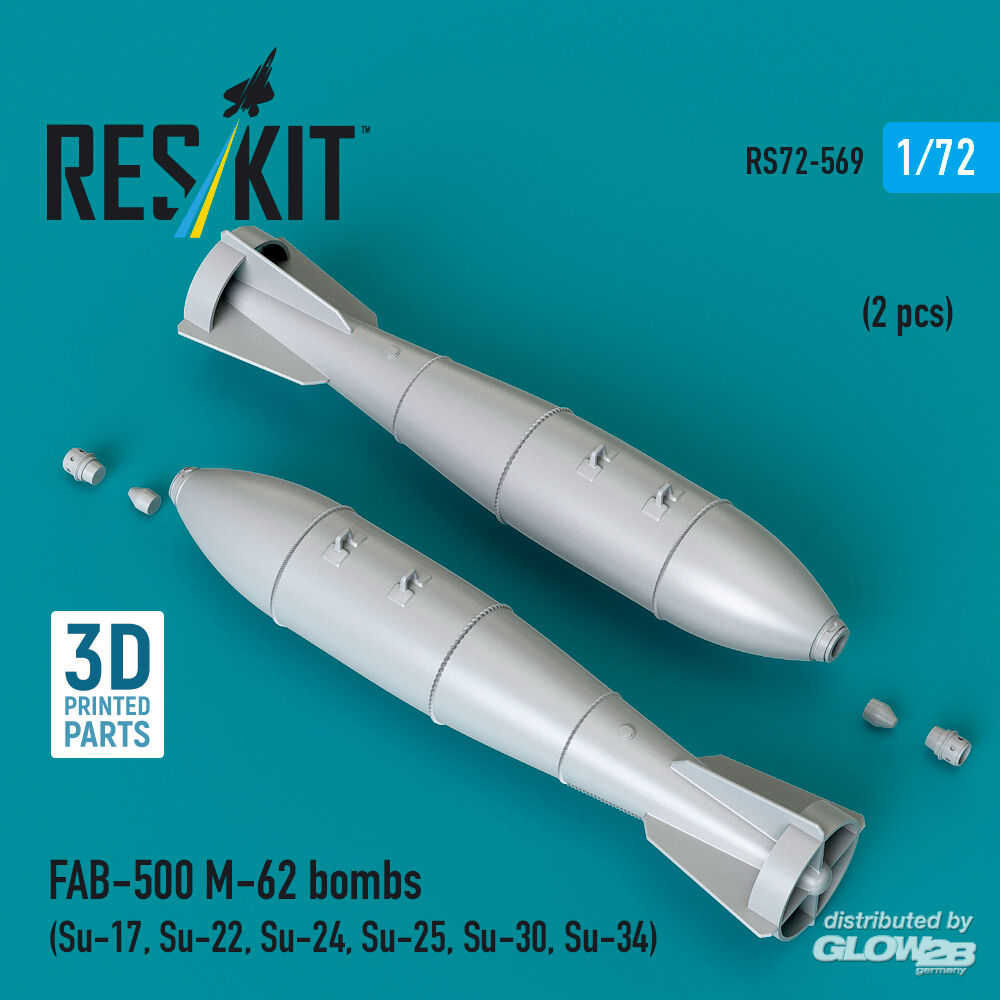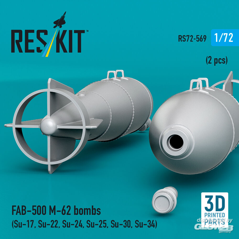 ResKit Models: FAB-500 M-62 bombs (2 pcs) (Su-17, Su-22, Su-24, Su-25, Su-30, Su-34) (3D Printed) in 1:72 [4595105690]
