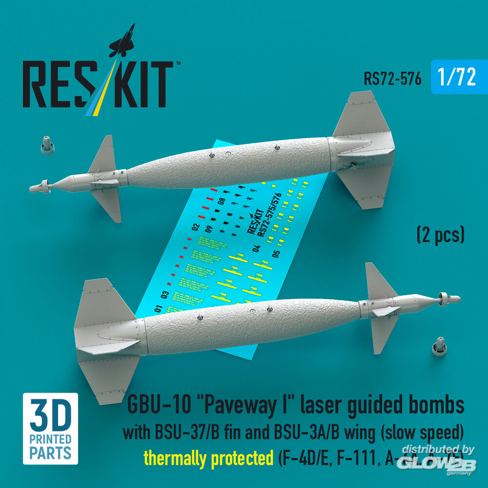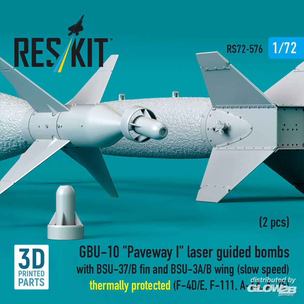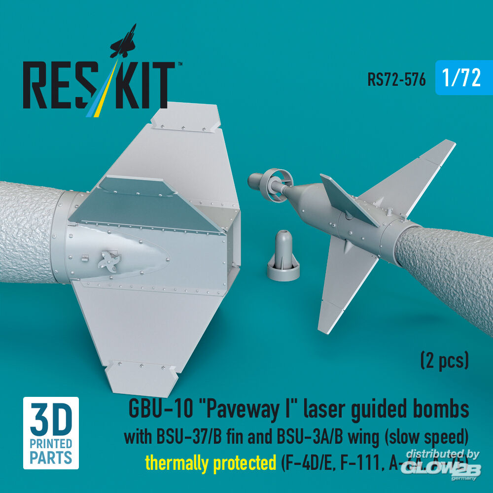 ResKit Models: GBU-10 Paveway I laser guided bombs with BSU-37/B fin and BSU-3A/B wing (slow speed) thermally protected (2 pcs) (F-4D/E, F-111, A-6A, A-7E) (3D Printed) in 1:72 [4595105768]