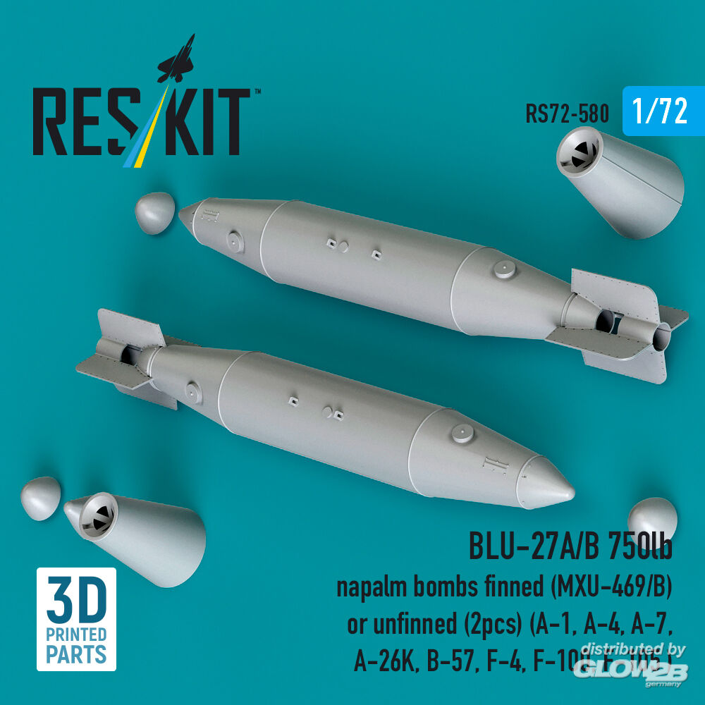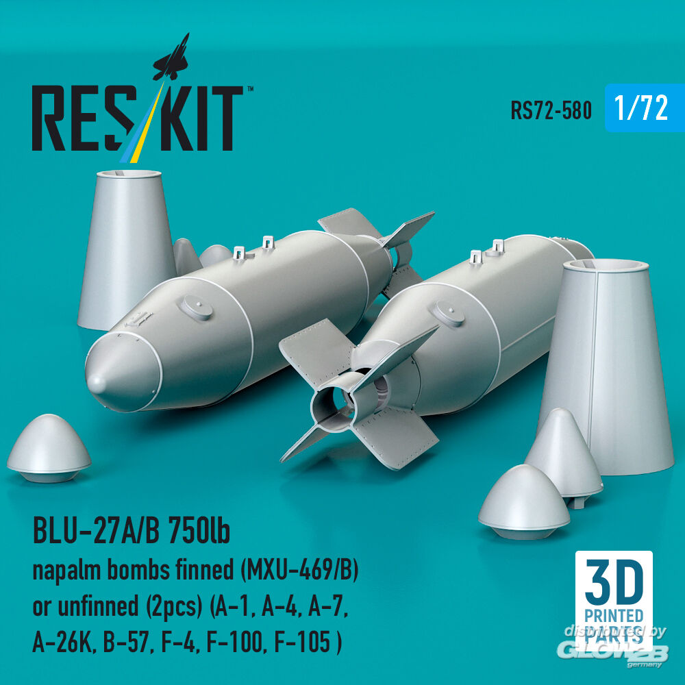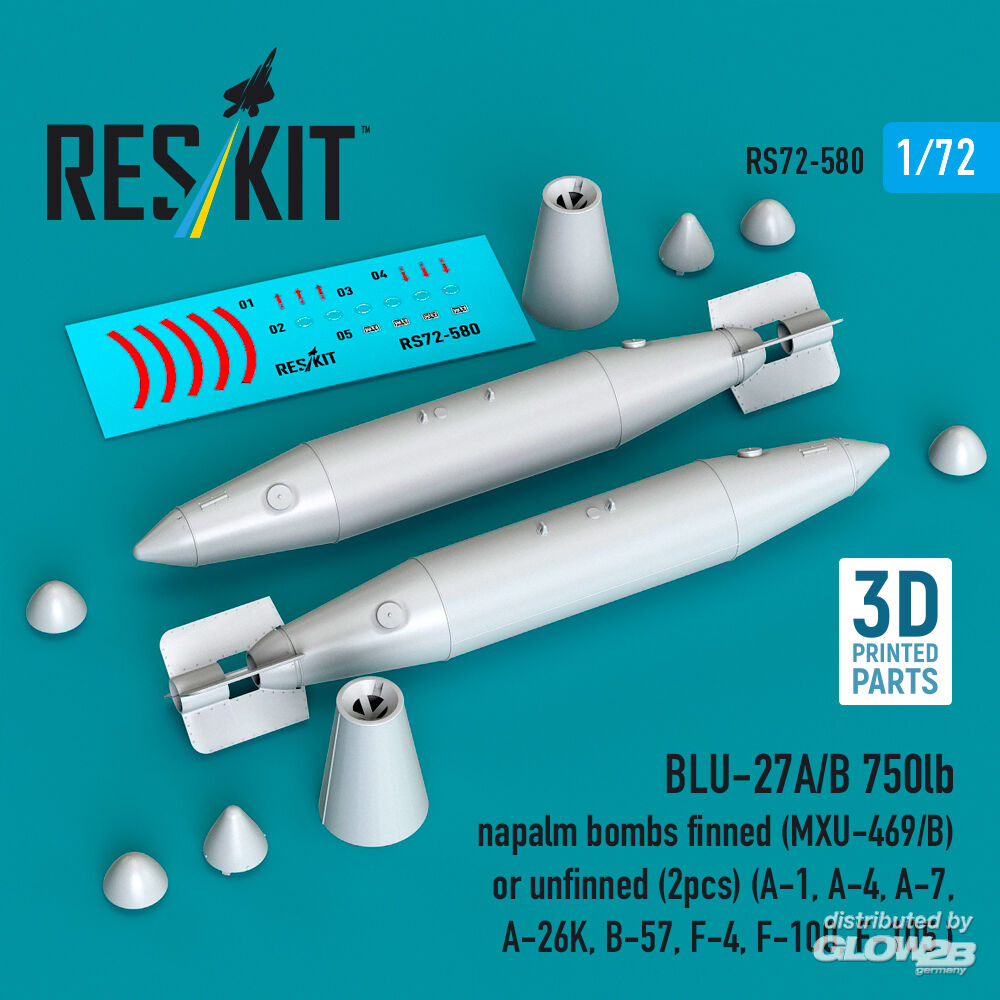 ResKit Models: BLU-27A/B 750lb napalm bombs finned (MXU-469/B) or unfinned (2pcs) (A-1, A-4, A-7, A-26K, B-57, F-4, F-100, F-105 ) (3D Printed) in 1:72 [4595105805]