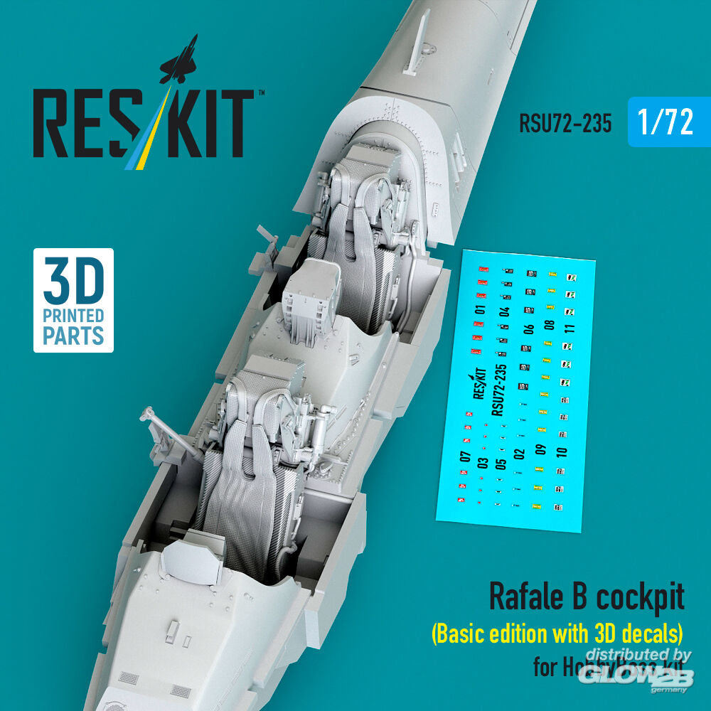 ResKit Models: Rafale B cockpit (Basic edition with 3D decals) for HobbyBoss kit (3D Printed) in 1:72 [4595202351]