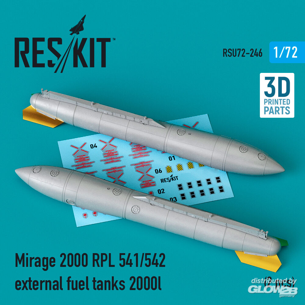 ResKit Models: Mirage 2000 RPL 541/542 external fuel tanks 2000lt (2 pcs) (3D Printed) in 1:72 [4595202467]
