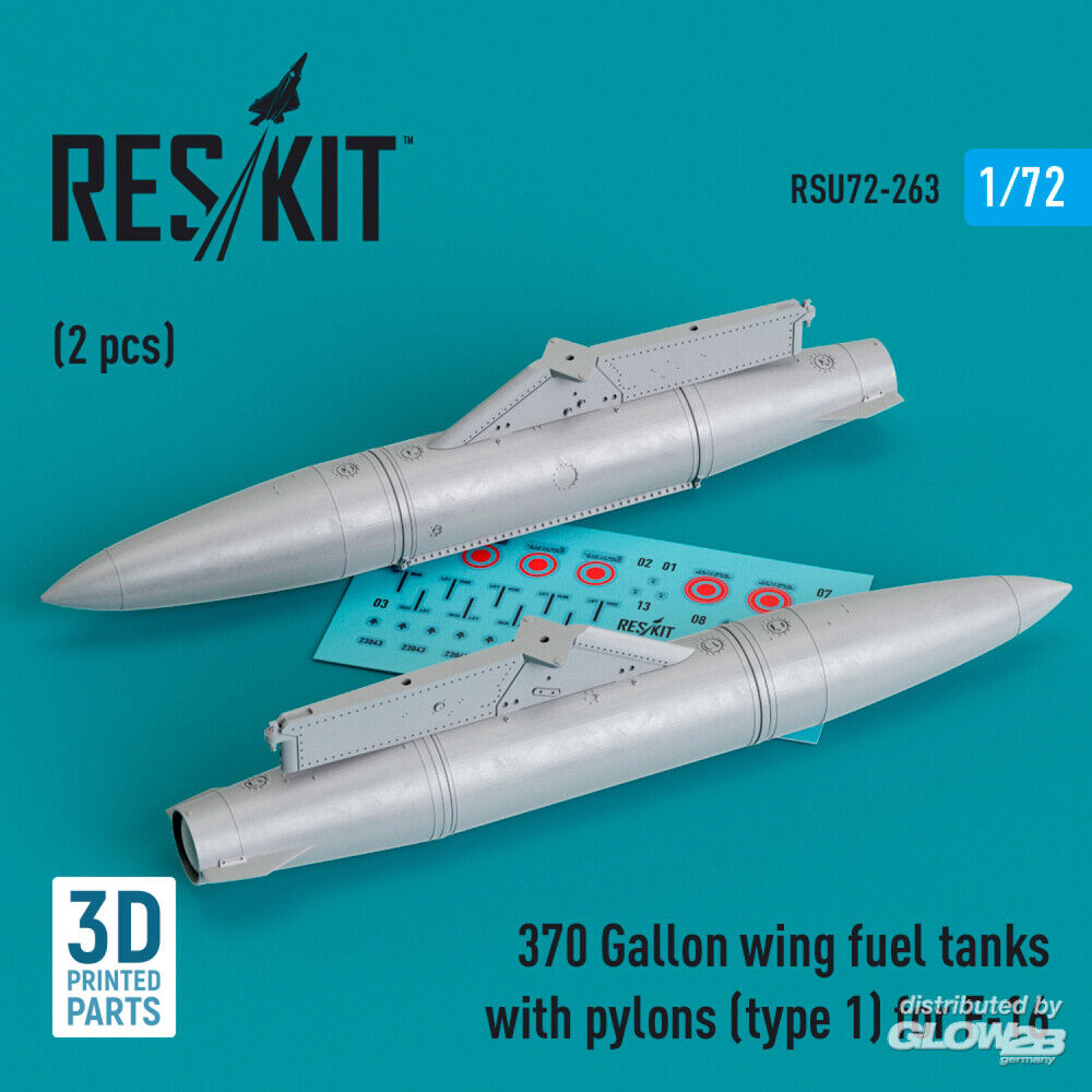 ResKit Models: 370 Gallon wing fuel tanks with pylons (type 1) for F-16 (A/B/C/D/E/F/I) (2 pcs) (3D Printed) in 1:72 [4595202634]