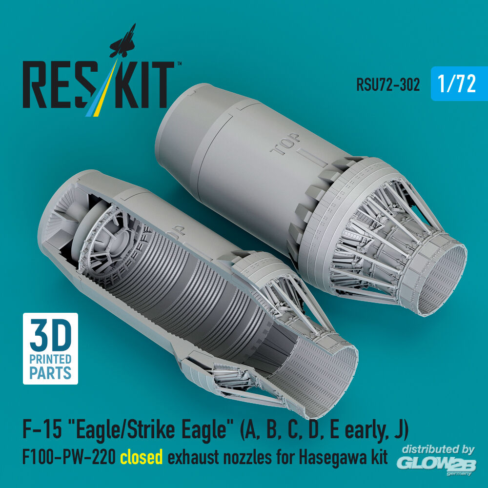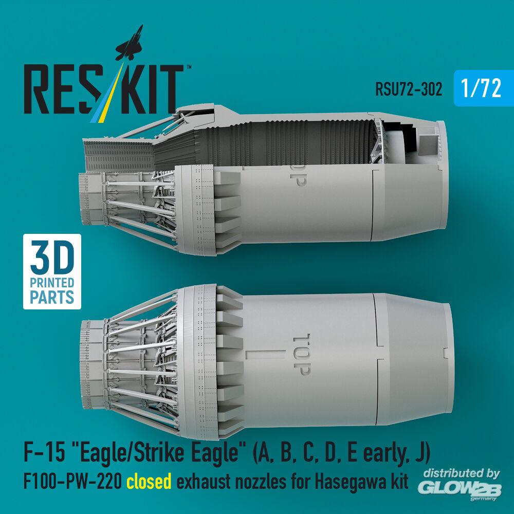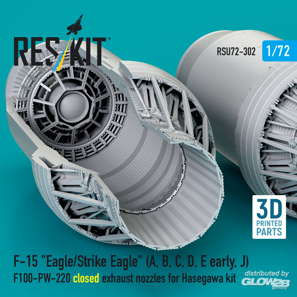 ResKit Models: F?15 Eagle/Strike Eagle (A, B, C, D, E early, J) F100-PW-220 closed exhaust nozzles for Hasegawa kit (3D Printed) in 1:72 [4595203020]