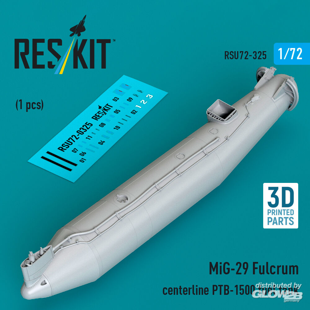 ResKit Models: MiG-29 Fulcrum centerline PTB-1500 fuel tank (1 pcs) (3D Printed) in 1:72 [4595203259]