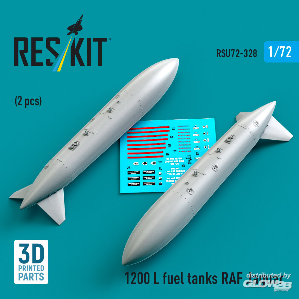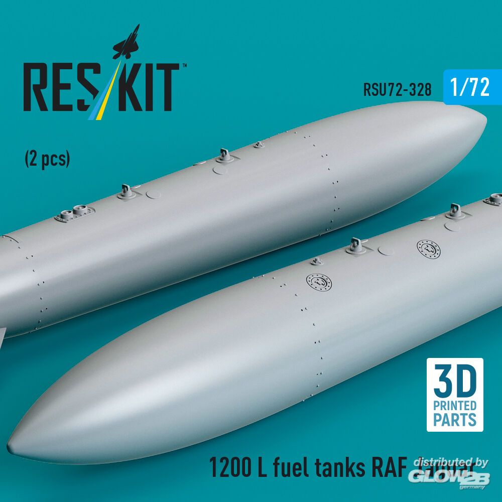 ResKit Models: 1200 L fuel tanks RAF Jaguar (2 pcs) (3D Printed) in 1:72 [4595203280]