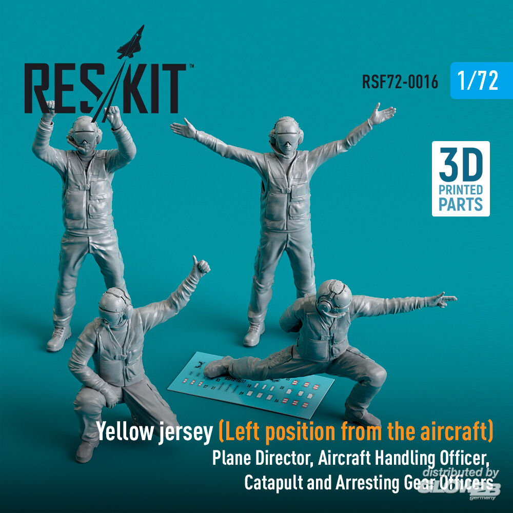ResKit Models: Yellow jersey (Modern) (Left position from the aircraft) Plane Director, Aircraft Handling Officer, Catapult and Arresting Gear Officers (4 pcs) (3D Printed) in 1:72 [4595400160]
