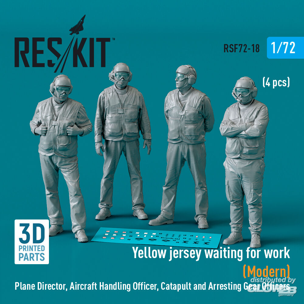 ResKit Models: Yellow jersey waiting for work (Modern) Plane Director, Aircraft Handling Officer, Catapult and Arresting Gear Officers (4 pcs) (3D Printed) in 1:72 [4595400184]