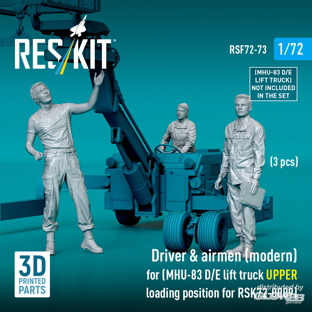 ResKit Models: Driver & airmen (modern) (3 pcs) (MHU-83 D/E lift truck UPPER loading position for RSK72-0009) (3D Printed) in 1:72 [4595400733]