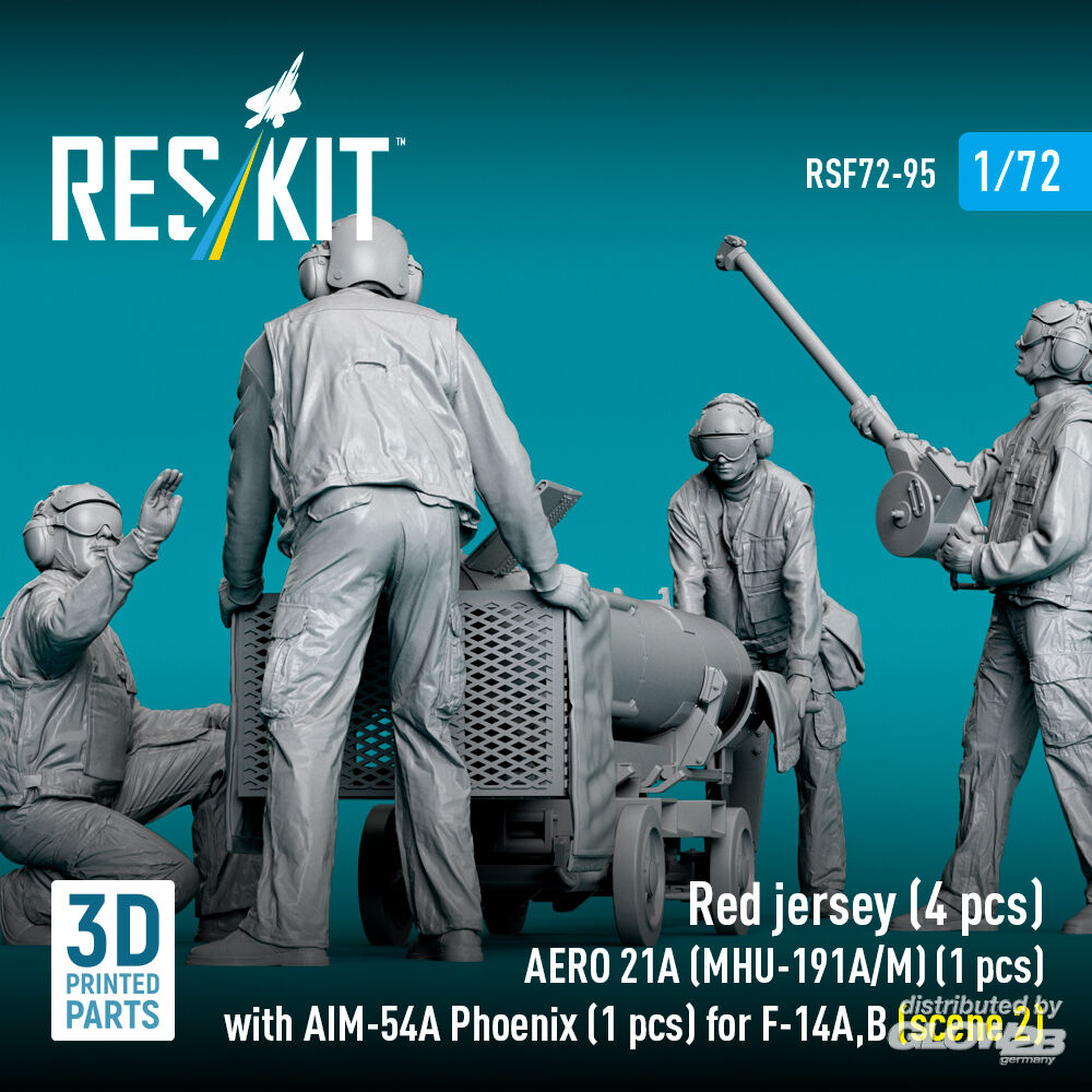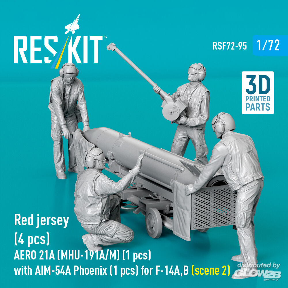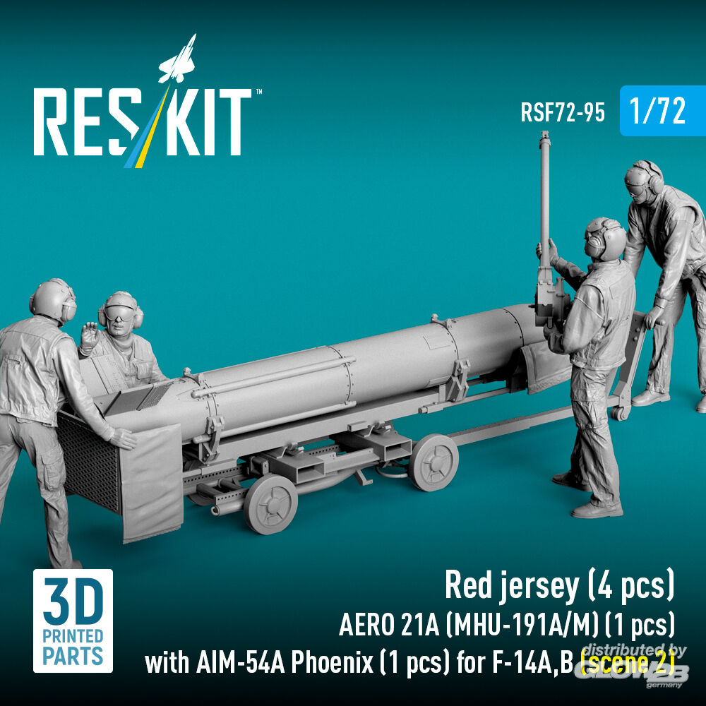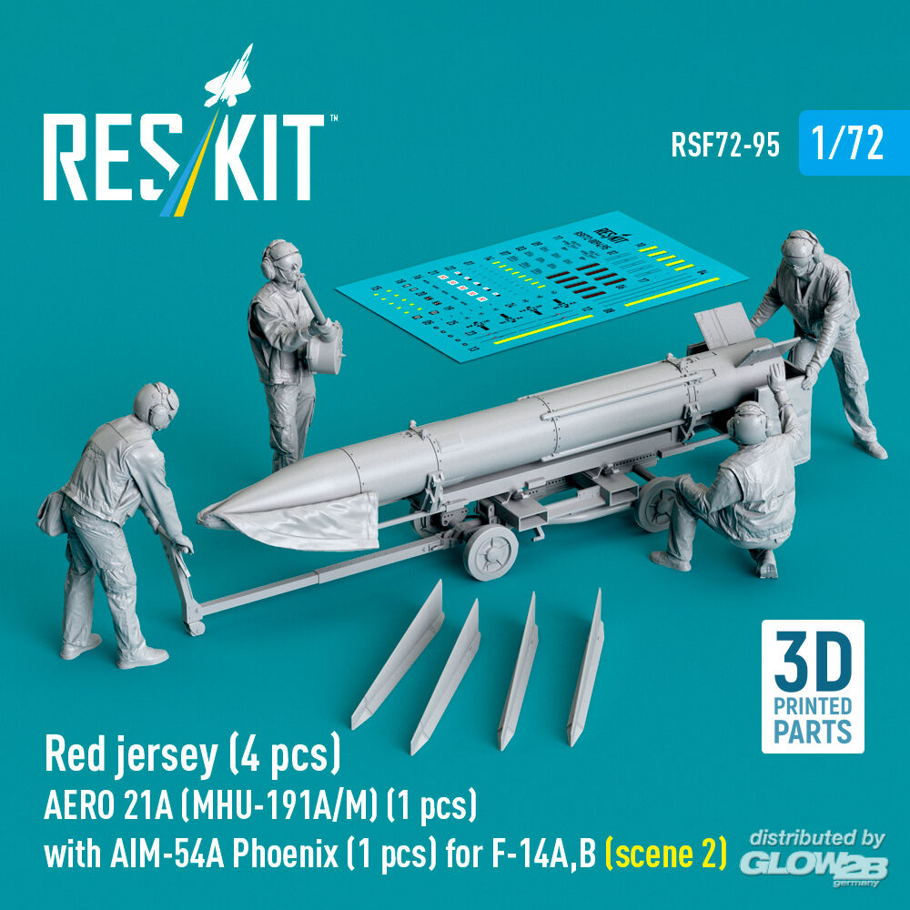 ResKit Models: Red jersey (4 pcs) AERO 21A (MHU-191A/M) (1 pcs) with AIM-54A Phoenix (1 pcs) for F-14A,B (scene 2) (3D Printed) in 1:72 [4595400955]