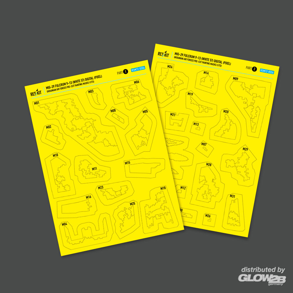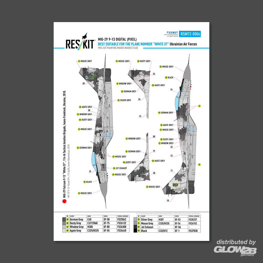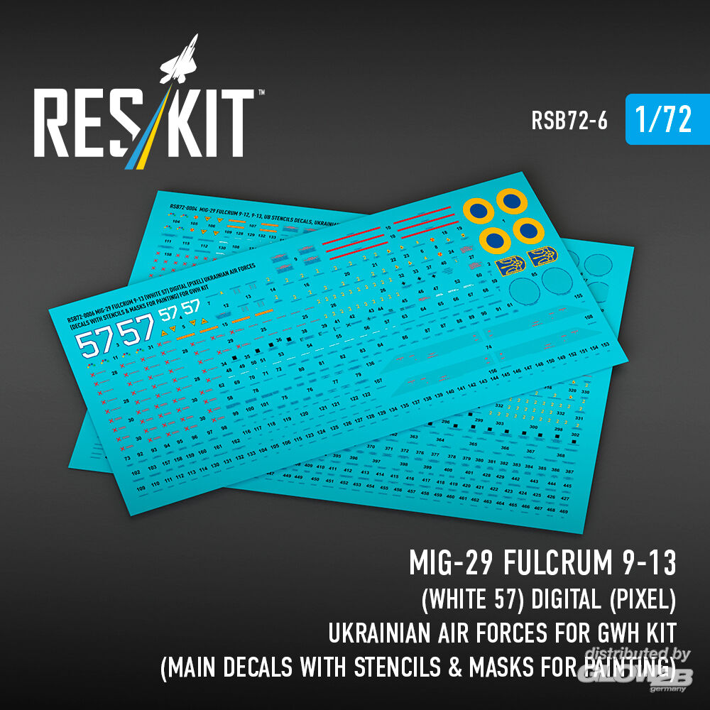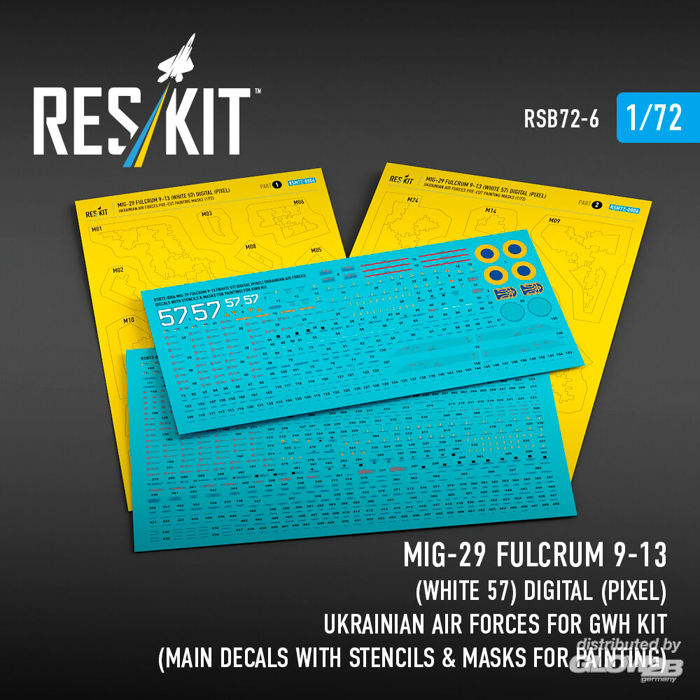 ResKit Models: MiG-29 Fulcrum 9-13 (White 57) Digital (Pixel) Ukrainian Air Forces for GWH kit (Main Decals with Stencils & Masks for painting) in 1:72 [4595800069]