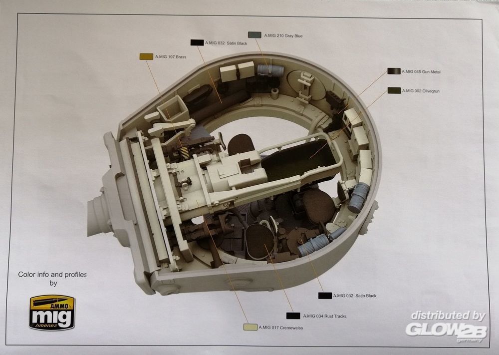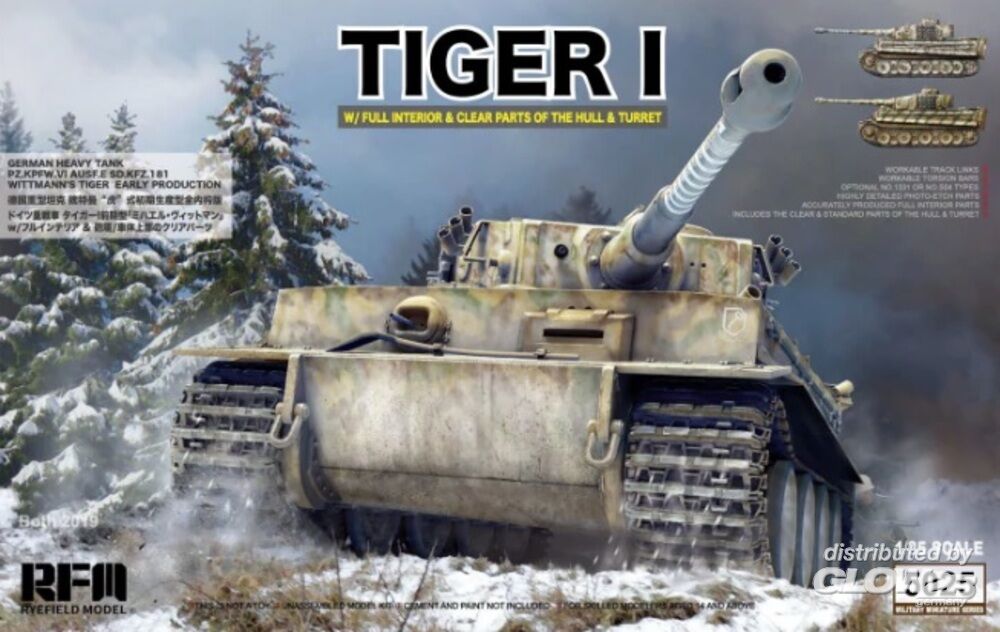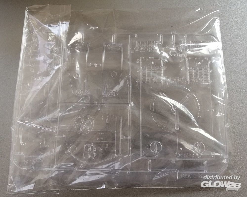 - No. S04, sPzAbt 101, Russia, January 1944 - No. 1331, 1st Panzer Division 1943 mit detailliertem Interior, Ätzteilen, Draht als Abschleppseil, Decals, Einzelglieder Ketten und Klarteilen. Der Turm und die Abdeckung des Innenraums kann wahlweise auch mit klarem Kunststoff gebaut werden, so daß die komplette Inneneinrichtung gesehen werden kann. Tiger I - No. S04, sPzAbt 101, Russia, January 1944 - No. 1331, 1st Panzer Division 1943 with detailed interior, etched parts, wire as tow rope, decals, workable track links chains and clear parts.The tower and the cover of the interior can be optionally built with clear plastic, so that the entire interior can be seen. Zusatzinformationen
