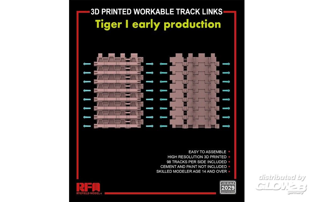 Rye Field Model: 3D printed Workable track links for Tiger I early in 1:35 [4806262104]