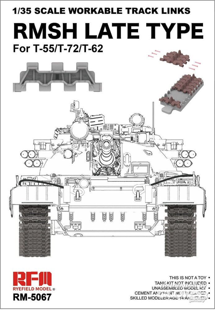 Rye Field Model: 1/35 Scale Workable Track Links RMSH Late Type For T-55/72/62 in 1:35 [4806262143]