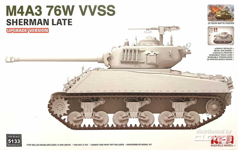 Rye Field Model: M4A3 76W VVSS Sherman Late Upgrade Version in 1:35 [4806262216]