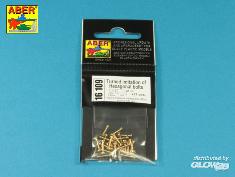 Aber Models: Turned imitation of Hexagonal bolts 1,6 x 6,0 mm x 25 pcs. in 1:16 [4832000077]