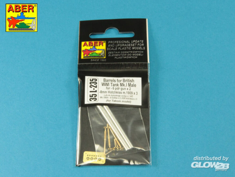 Aber Models: Barrels for British WWI Tank Mk.I Male - 6 pdr. gun x 2 & 8mm Hotchkiss m.1909 x 3 in 1:35 [4832000785]