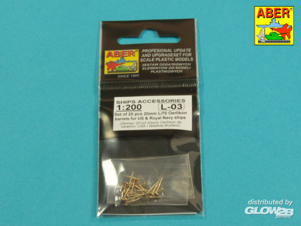 Aber Models: Set of 20 pcs 20 mm L/70 Oerlikon Mk.10 barrels for US Navy ships in 1:200 [4832001364]