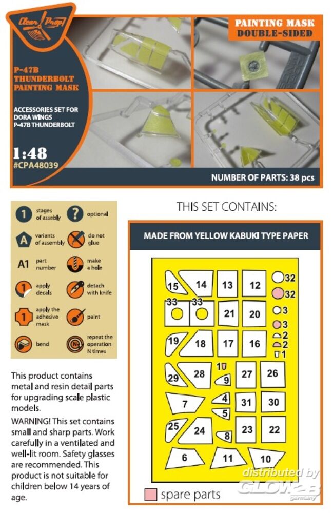 Clear Prop Accessories: P-47B Thunderbolt double-sided painting mask for Dora Wings kit in 1:48 [5072480392]