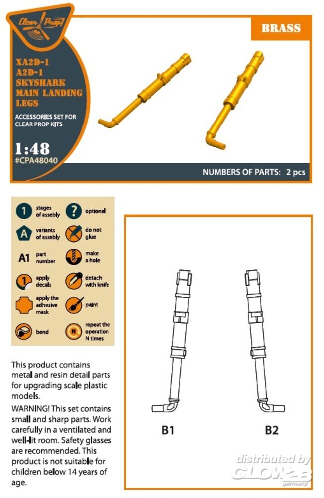 Clear Prop Accessories: XA2D-1, A2D-1 Skyshark main landing legs for CP kits in 1:48 [5072480408]